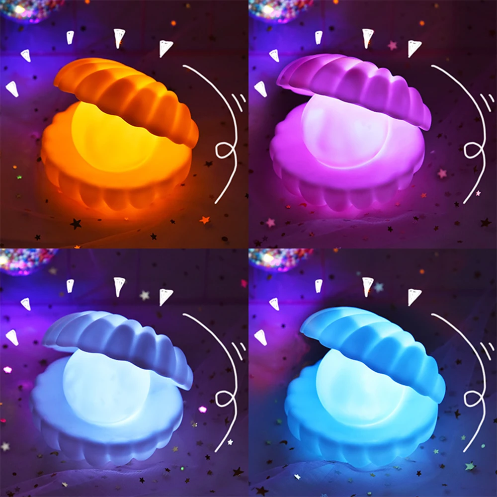 Жемчужный ночник в виде ракушки, прикроватная Ночная лампа, украшение для спальни, светильник в виде русалки, Сказочная ночник в виде ракушки, рождественский подарок