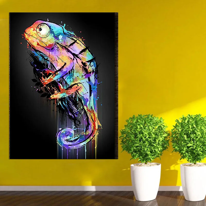 Абстрактная животная Картина на холсте Хамелеон искусство на стену ...