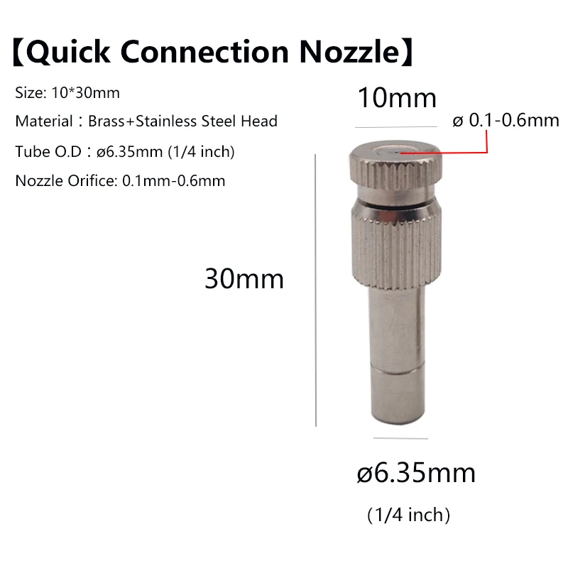 Упаковка: 1 шт. Материал: латунь Рабочая Давление: 2,0 кг Подача воды: 0,7 м³/ч Спрей радиус: 2,5 м Размер соединения: 1/4 ''или 10-24 UNC Женская резьба