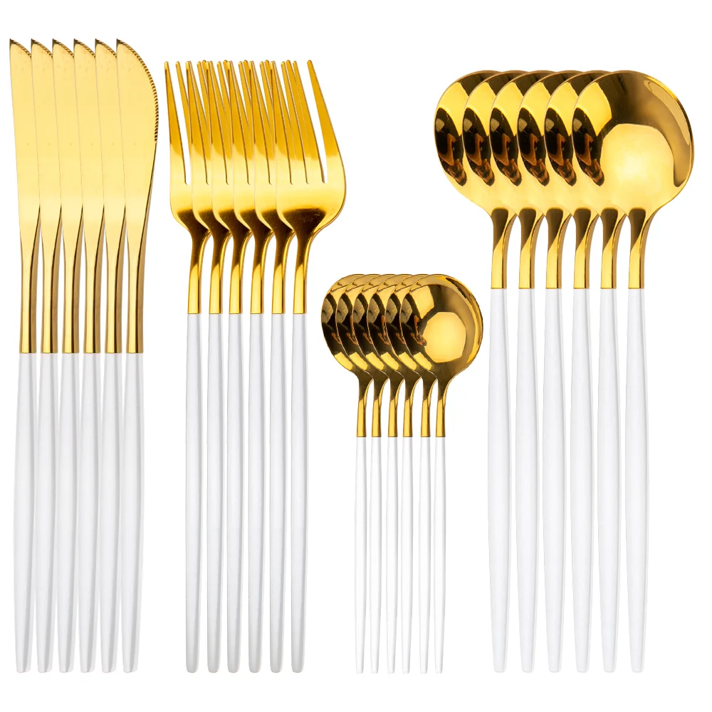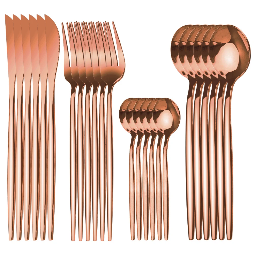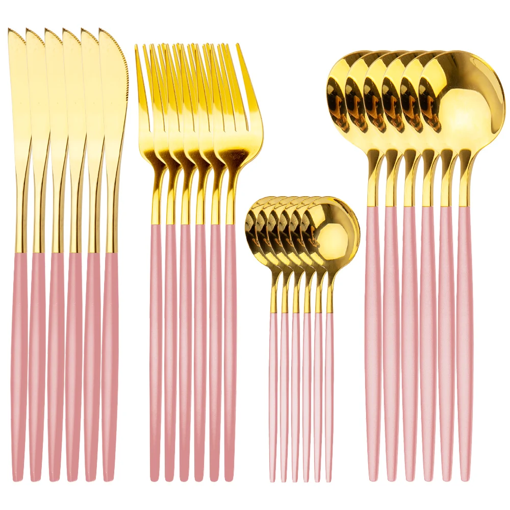 столовые приборы Набор золотых столовых приборов из нержавеющей стали, набор из 24 шт. ножей, вилок, ложек для стейка, столовая посуда, наборы посуды, набор столовых приборов, наборы ложек для кухни чайные ложки