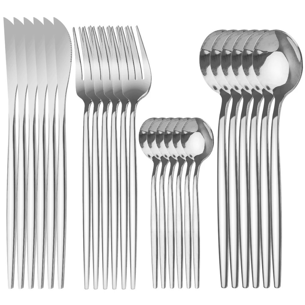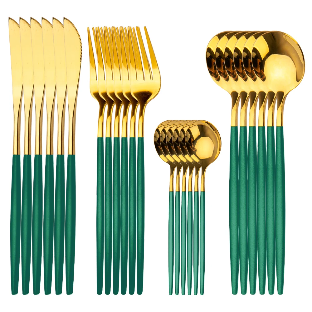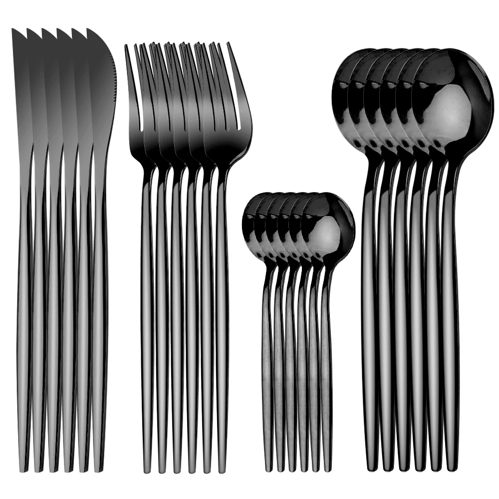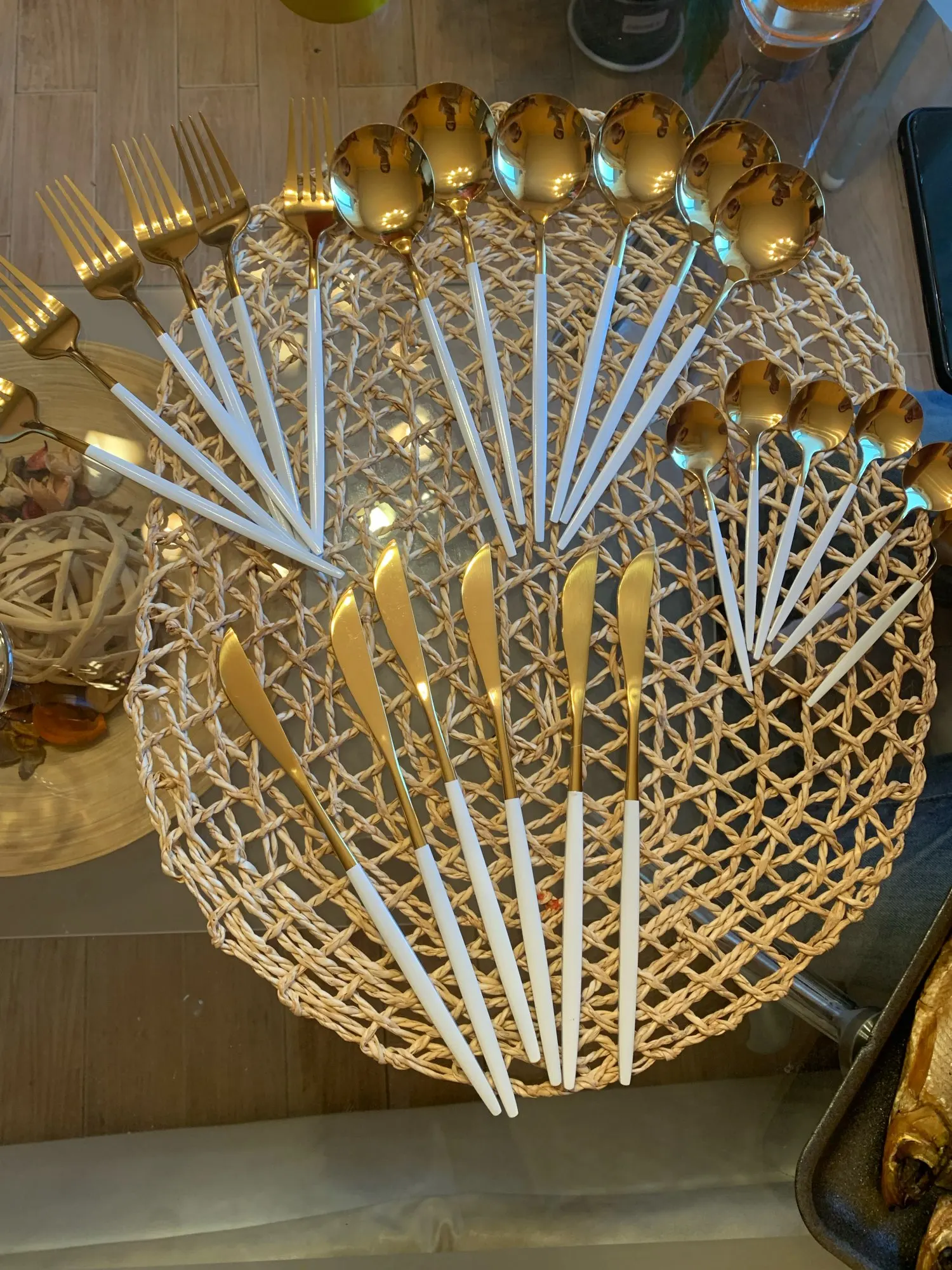 столовые приборы Набор золотых столовых приборов из нержавеющей стали, набор из 24 шт. ножей, вилок, ложек для стейка, столовая посуда, наборы посуды, набор столовых приборов, наборы ложек для кухни чайные ложки