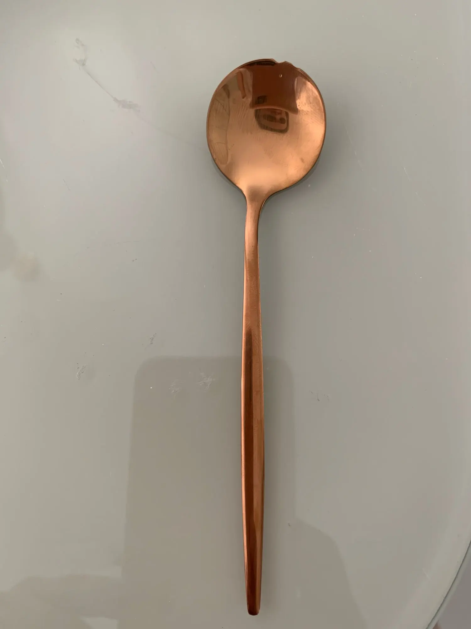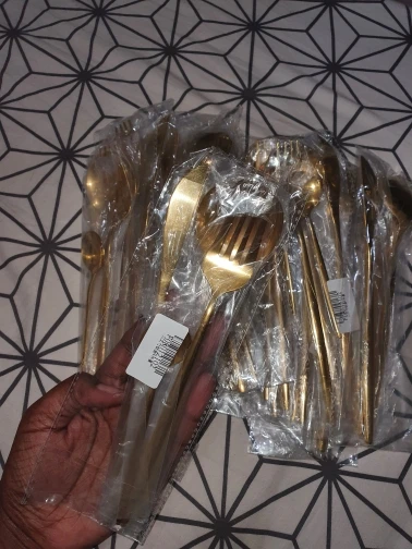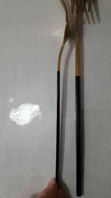 Качество хорошее, но материал изделия в порядке. Я ожидал, что он будет немного толще и тяжелее, как обычные столовые приборы, которые я обычно использую. Эти легко сгибаются и теряют цвет сверхурочно.
