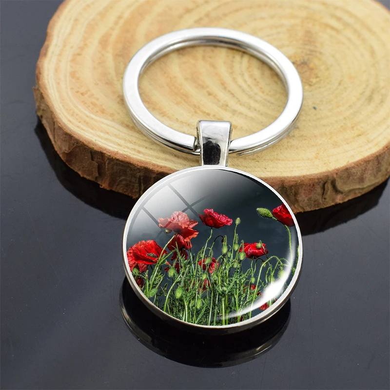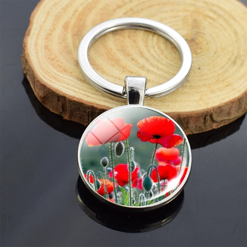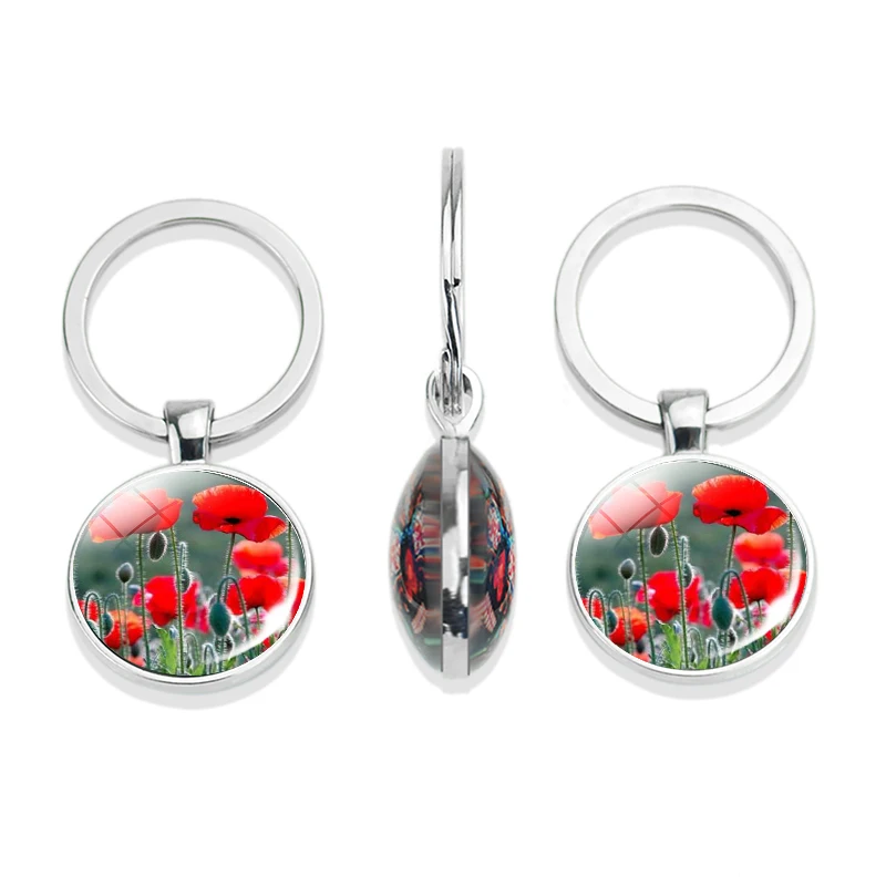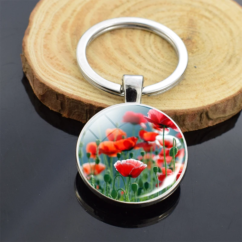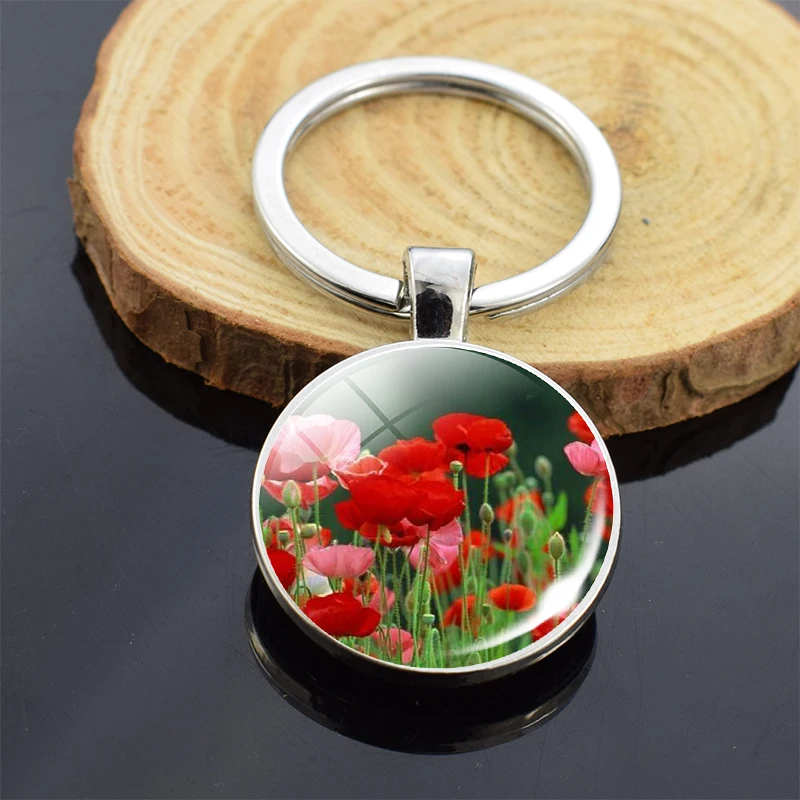 Картина с изображением цветков мака двухсторонний брелок со стеклянным кабошоном обувь для мужчин и женщин; Обувь с цветочным узором кулон брелок для ключей ювелирных изделий брелок для автомобильных ключей аксессуар подарок