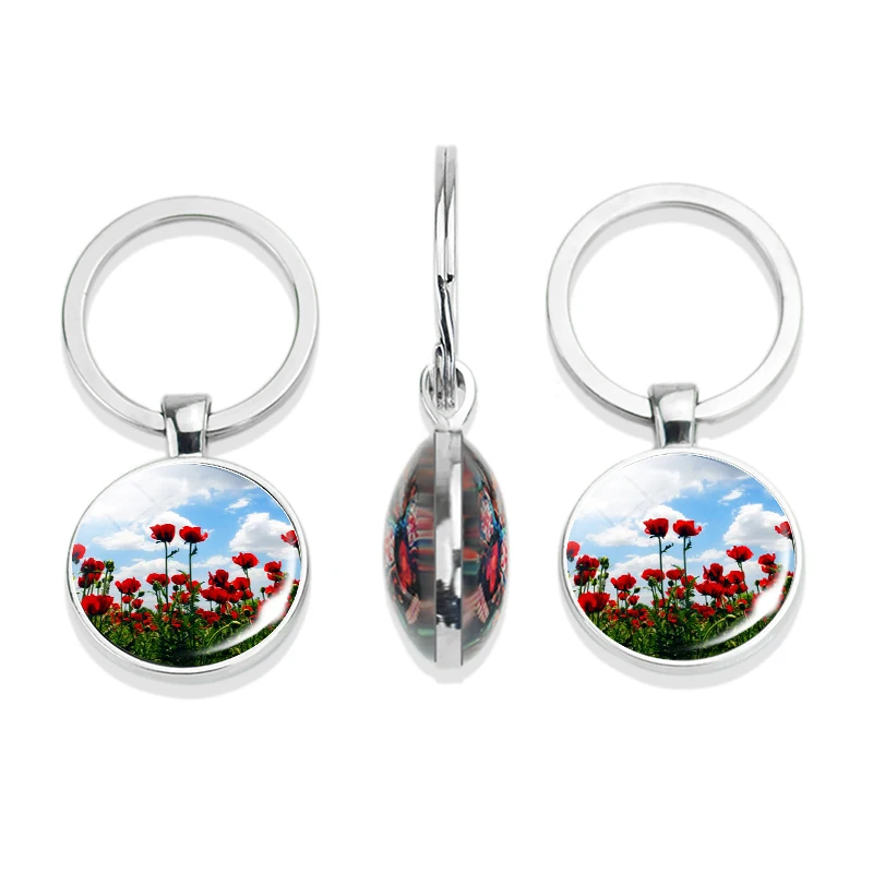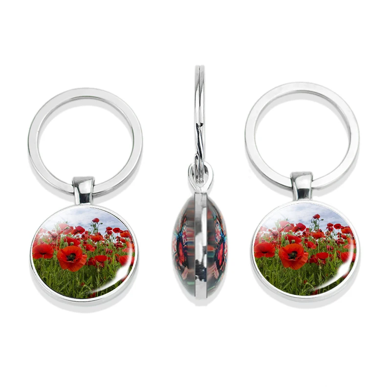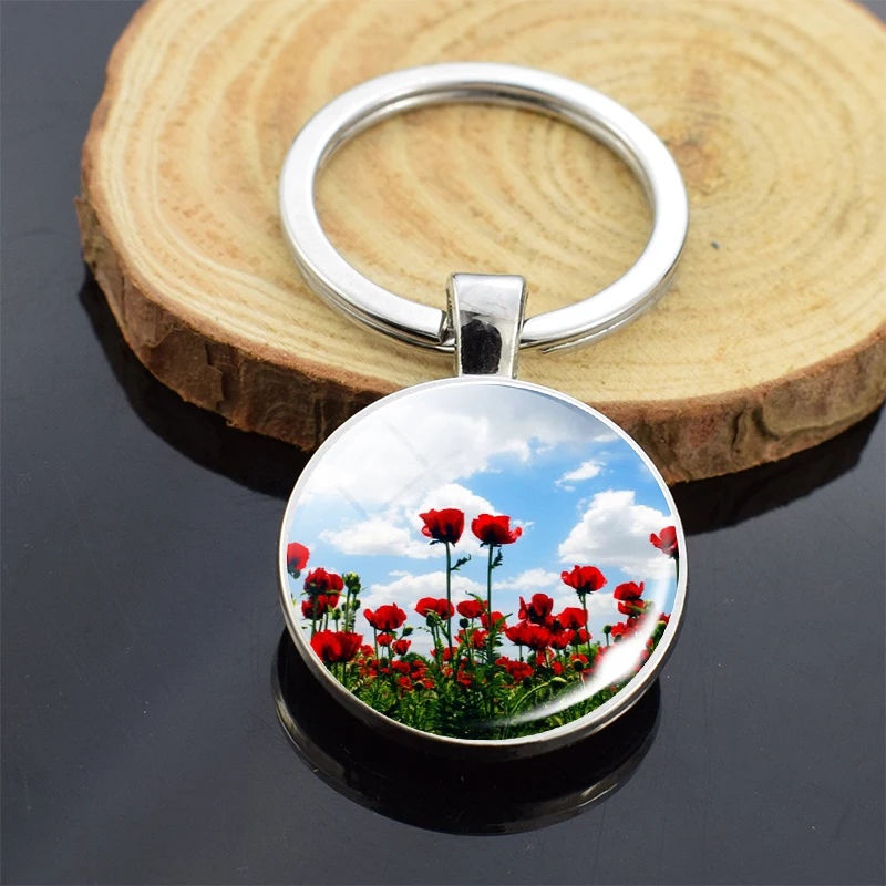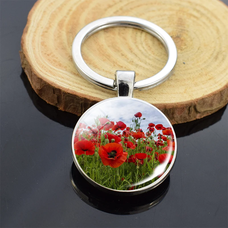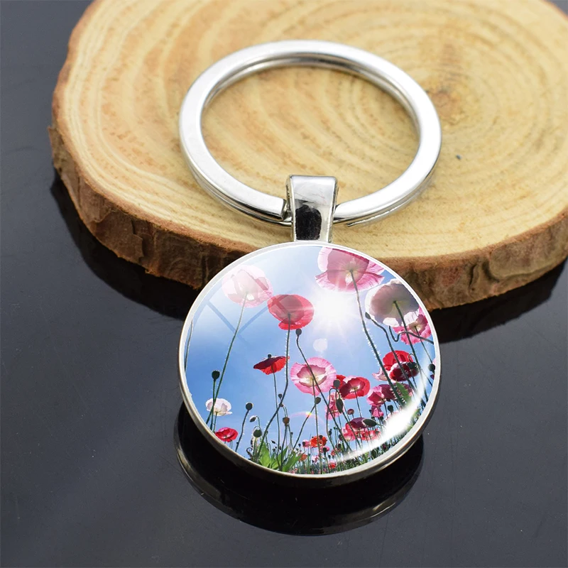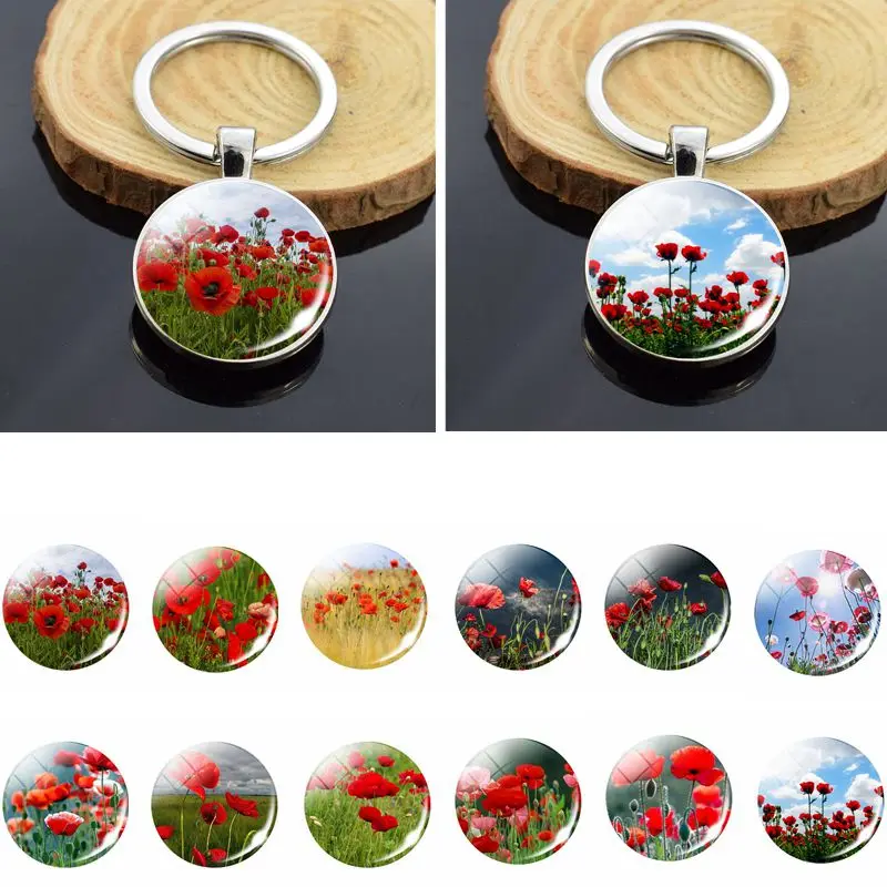 Картина с изображением цветков мака двухсторонний брелок со стеклянным кабошоном обувь для мужчин и женщин; Обувь с цветочным узором кулон брелок для ключей ювелирных изделий брелок для автомобильных ключей аксессуар подарок