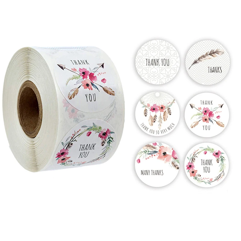 500 шт. в рулоне Круглые Цветочные стикеры спасибо за Скрапбукинг для упаковки этикетки для печати наклейки на заказ декоративные свадебные Стикеры