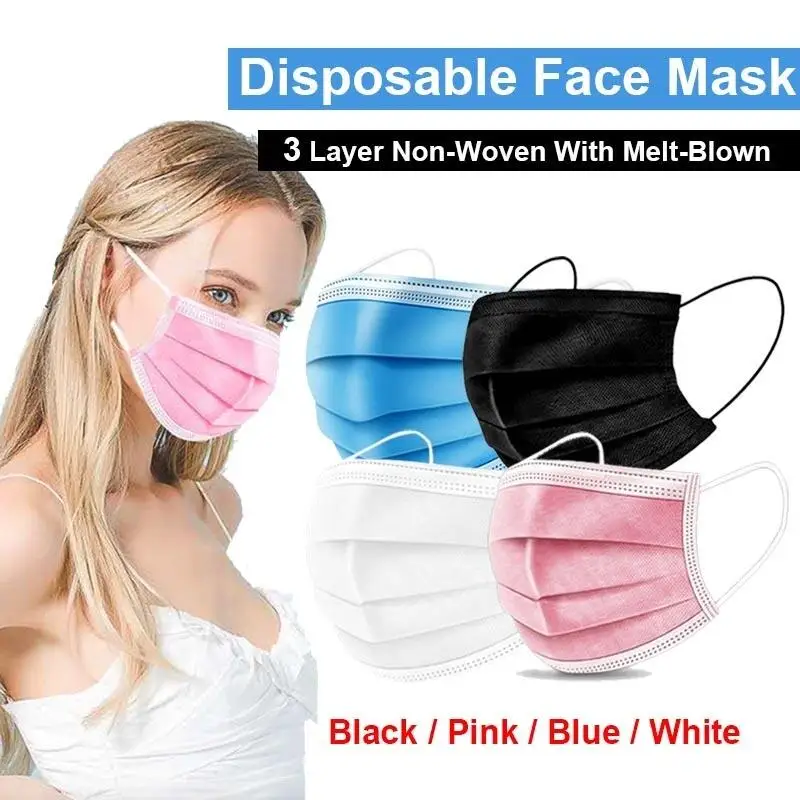 50 шт.лот 3 Слои одноразовая медицинская маска синий черный, белый,...