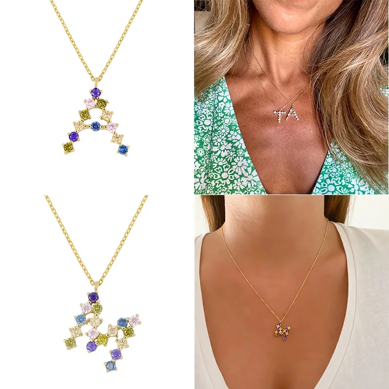 AIDE Мода 26 букв кулон ожерелье для женщин с разноцветными циркон ...