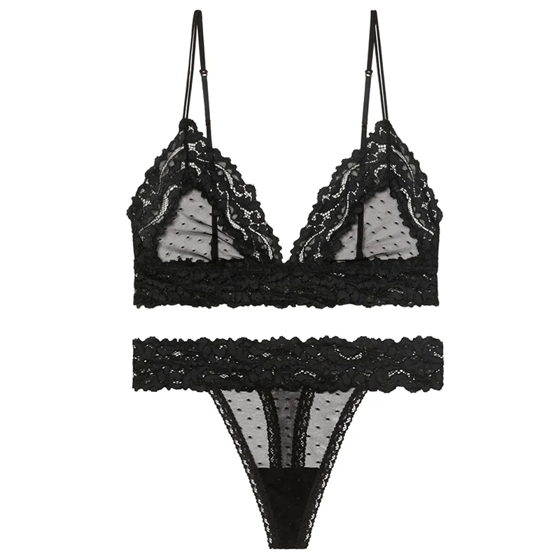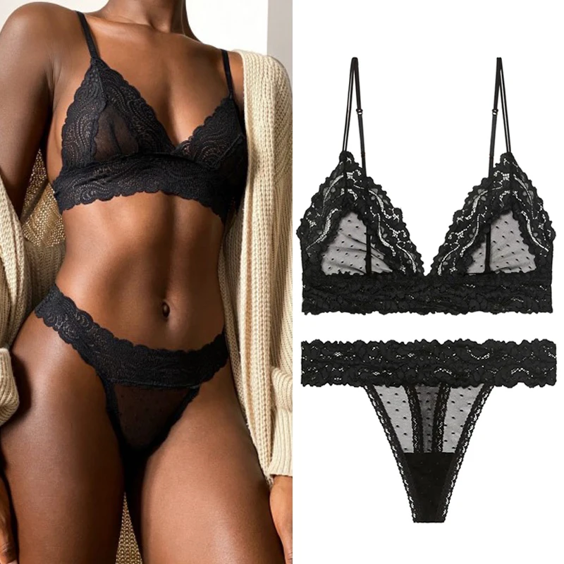Комплект женского сексуального нижнего белья, прозрачный кружевной бюстгальтер, сетчатый бюстгальтер в горошек, бюстгальтер пуш-ап, трусики с Т-образной спинкой и V-образным вырезом