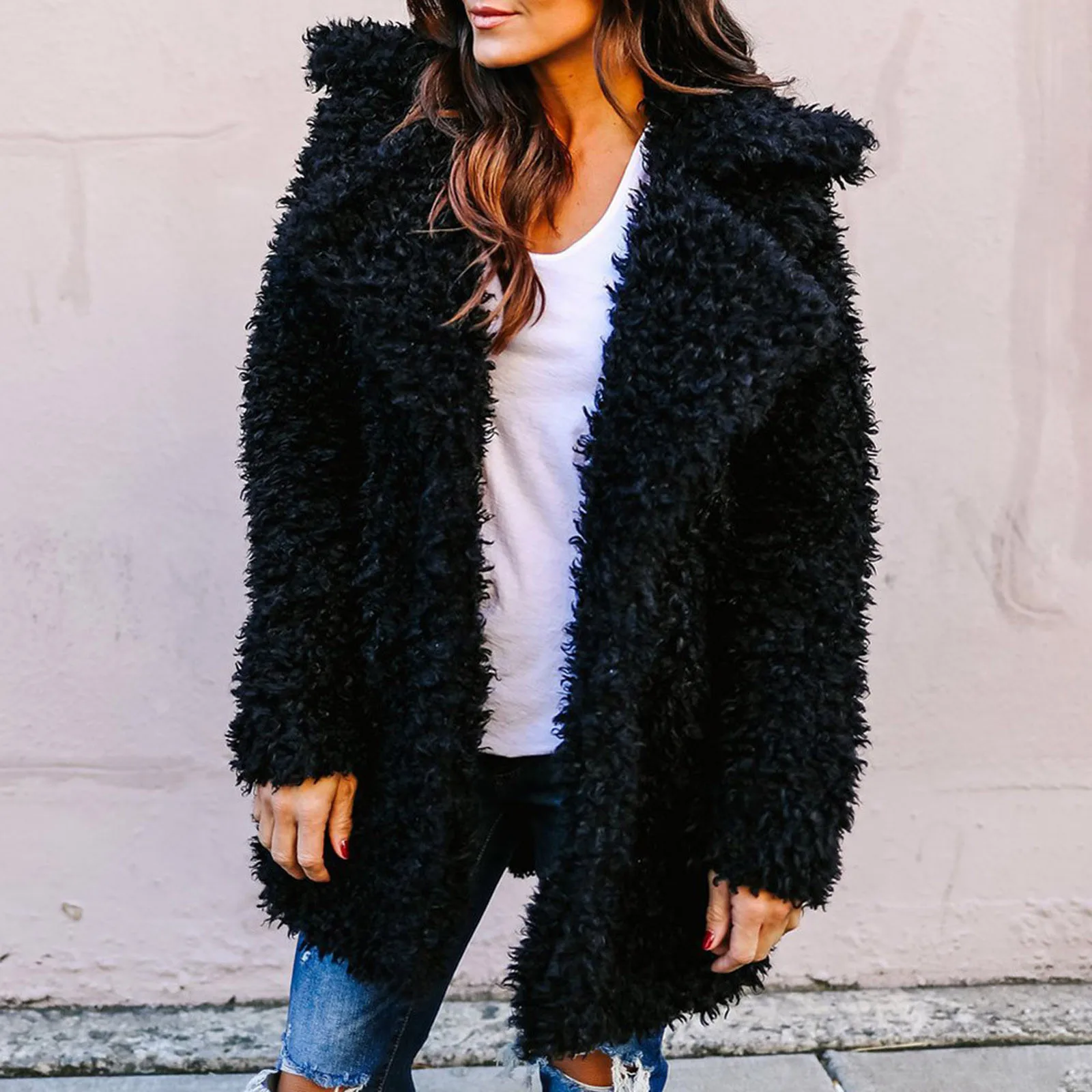 Женская теплая куртка из искусственного меха, однотонный длинный толстый кардиган, верхняя одежда