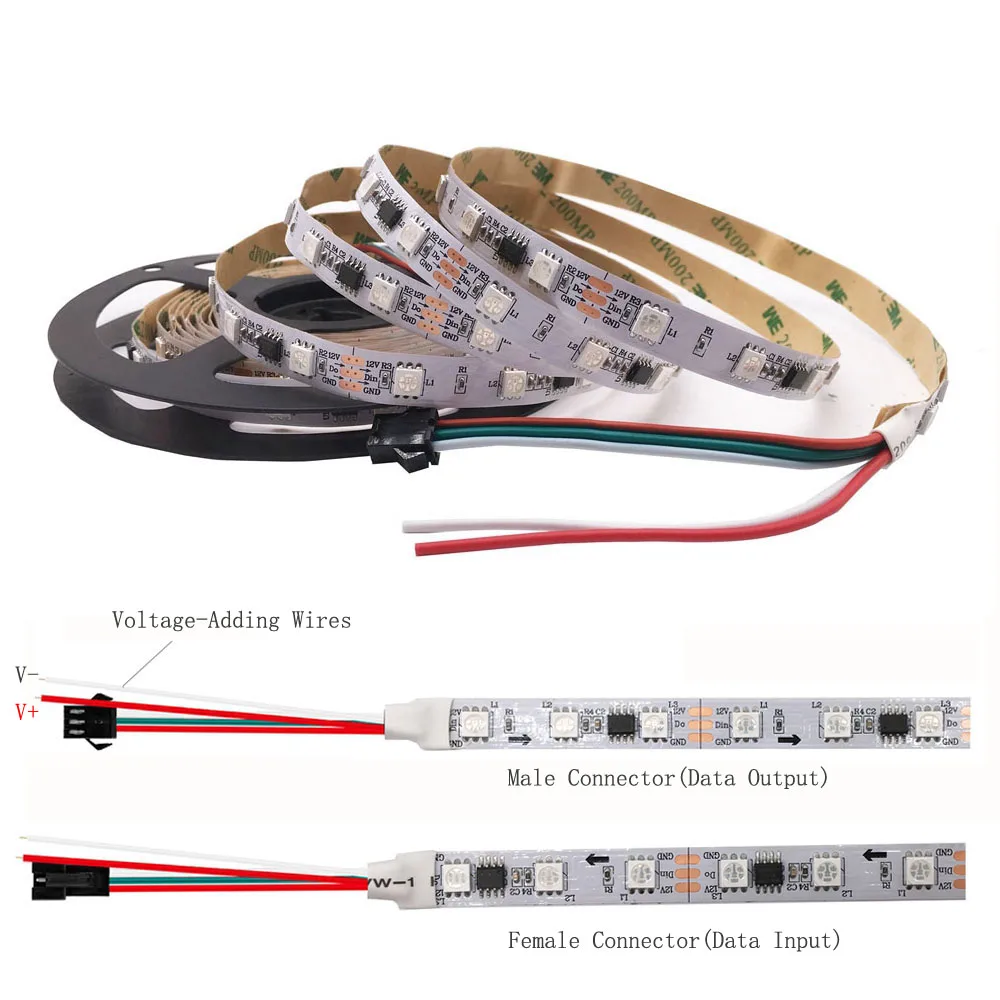 5m WS2811 светодиодный светильник полосы 5050 SMD RGB светодиодный полосы адресуемый 304860 светодиодный sm светодиодный Пиксели внешний 1 IC Управление 3 светодиодный s DC12V