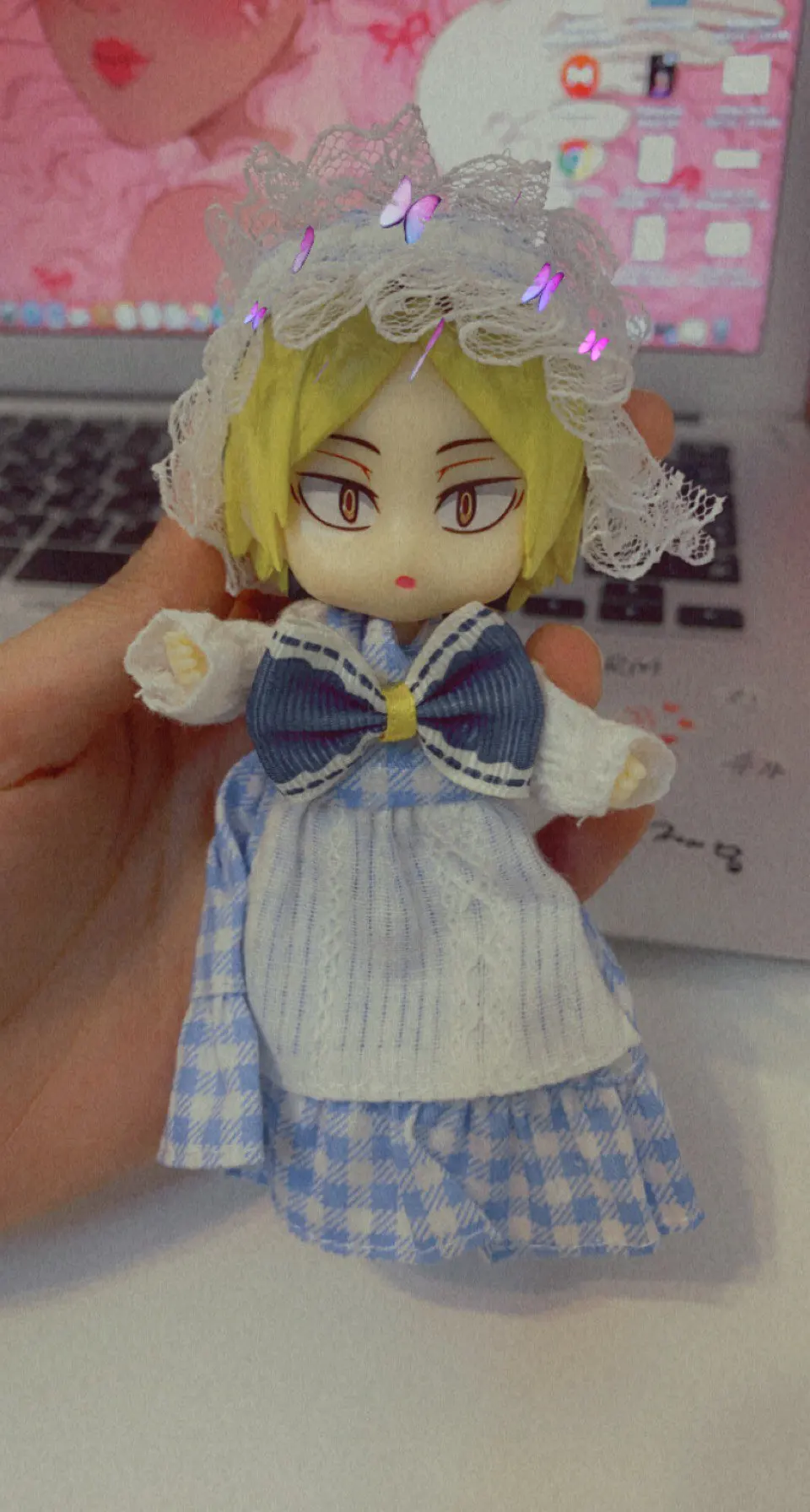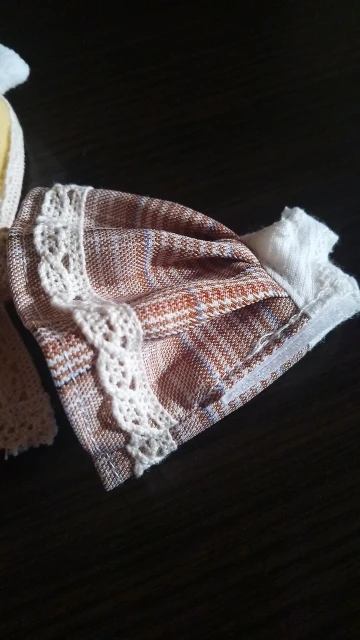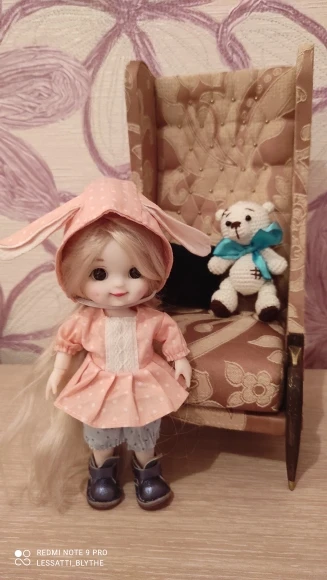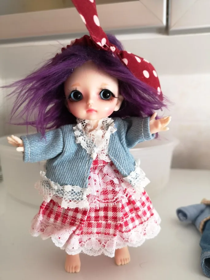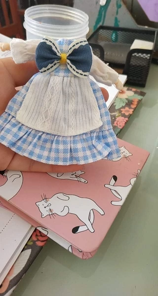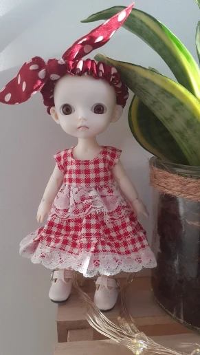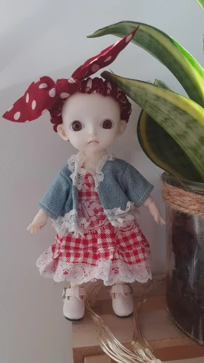 Замечательная одежда для кукол формата 1/8! Брала данное платье для своих миниатюрных кукол Лил Фейри, которым подходит формат как 1/8, так и 1/12. Платье сшито аккуратно. Нигде не торчат нитки и нет никаких неровных швов или дырок. Курточка сверху тоже не имеет почти никаких недостатков, кроме через чуть пришитего кружева на воротнике. Но это не критично. Бантик на резинке и достаточно большой. Может хорошо подойти куклам как формата 1/8, так и 1/6. На моей Лил Фейри платье слегка великовато, но это не критично. При желании можно чуть чуть ушить. В принципе данное платье может подойти худым куклам близким к формату 1/6 до 25 см как минимум. На куклах 15-18 см платье будет отлично смотреться по росту. Но опять же если велико то придется подгонят размер В целом комплектом очень довольна)) Буду заказывать ещё))