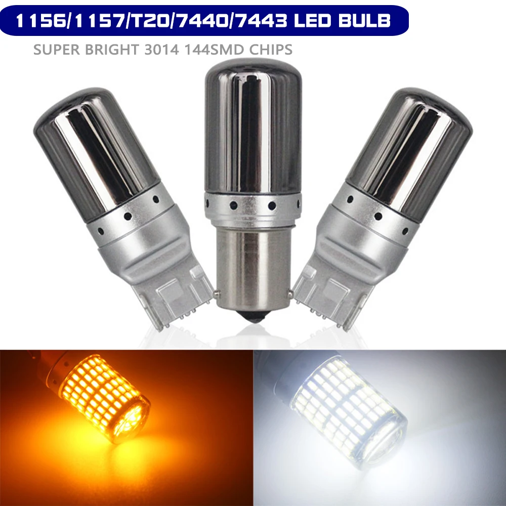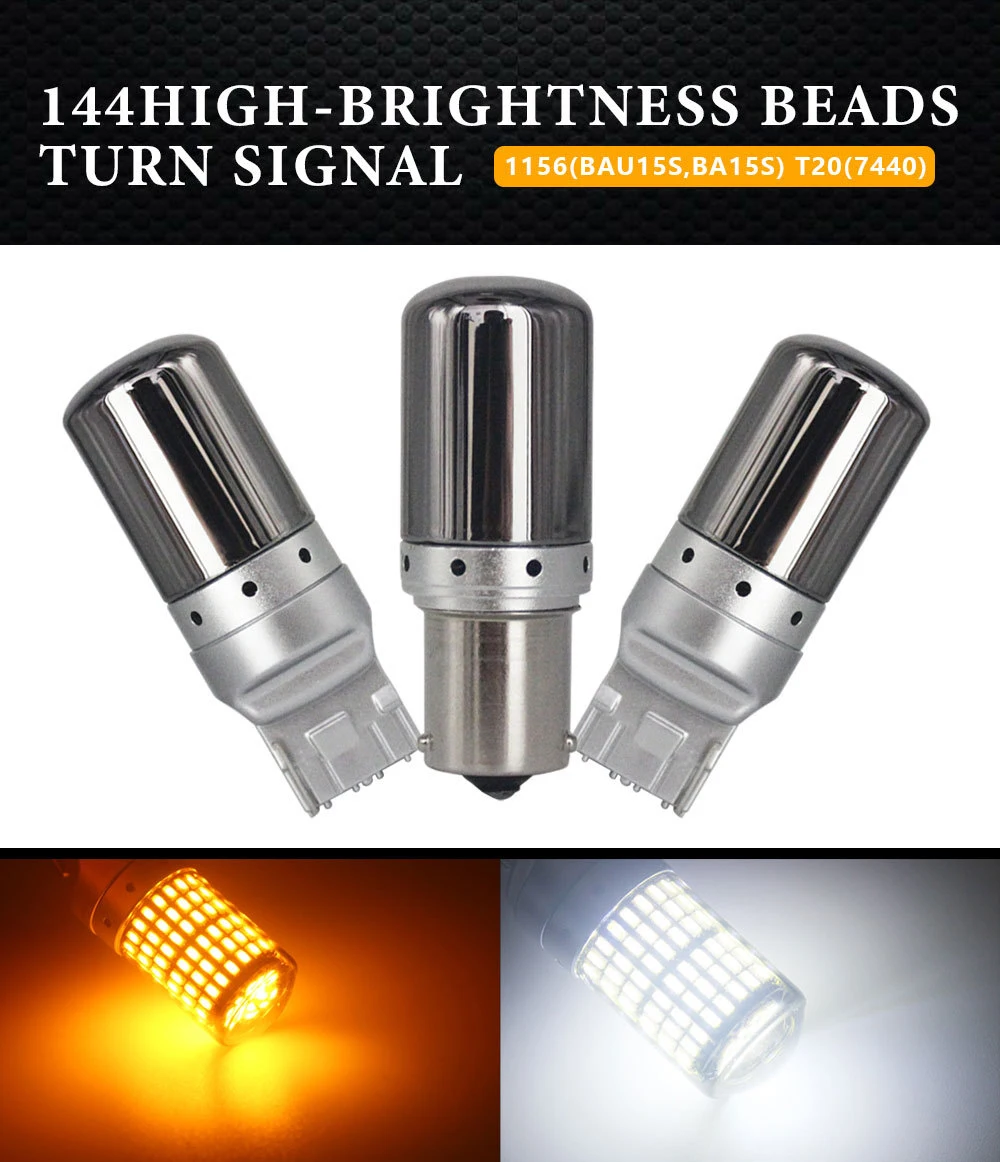Автомобильный светодиодный фонарь, 2 шт., сигнальная лампа 1156 P21W BA15S BAU15S, Canbus BAY15D светодиодный T20 W21W W215W, лампы 3014 чипов, 144SMD, задсветильник онарь поворота