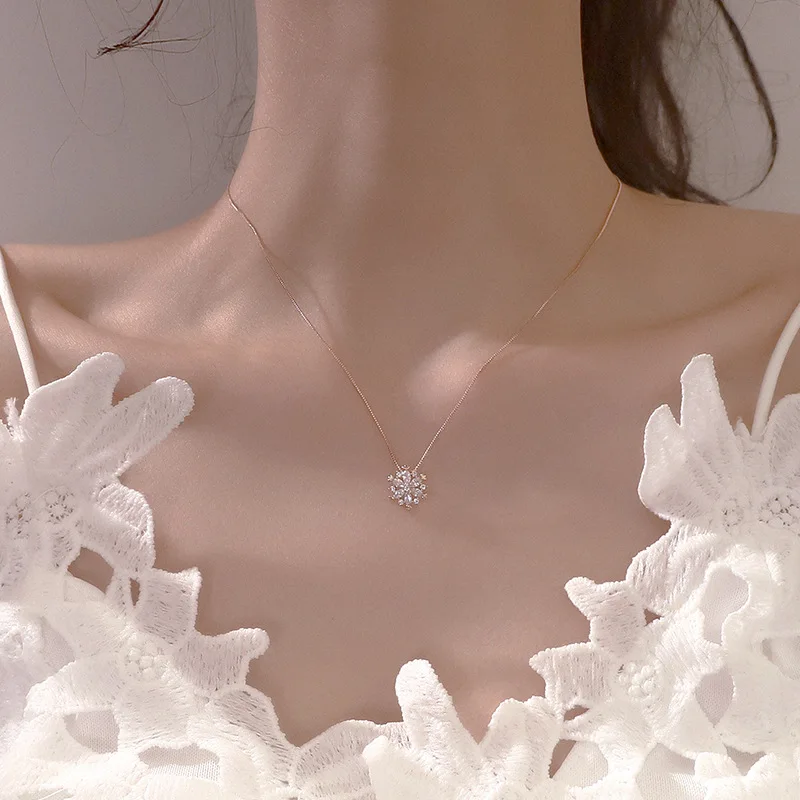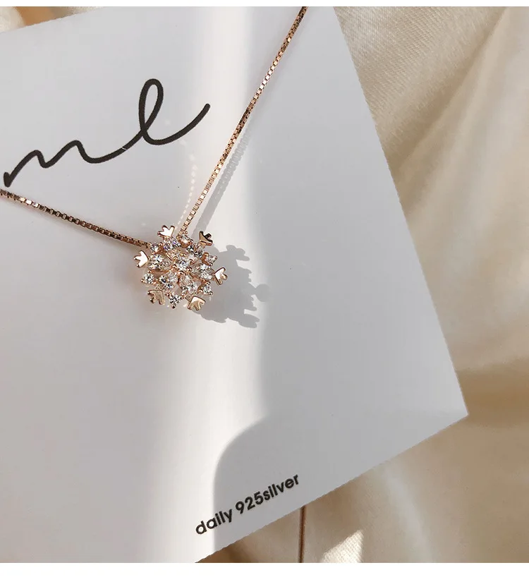 925 Серебряное ожерелье для женщин Хрустальная подвеска Снежинка ожерелье цепь Модные ювелирные изделия оптовая продажа