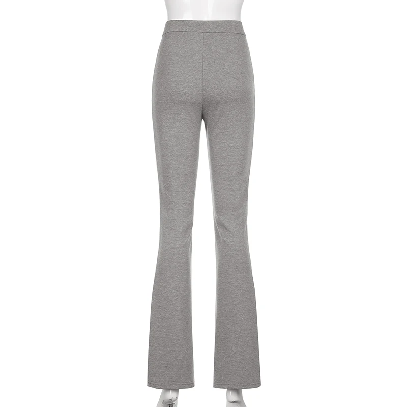 Женские расклешенные брюки с разрезом, модные однотонные облегающие спортивные брюки с высокой талией, молодежные женские брюки с широкими штанинами, новинка 2021