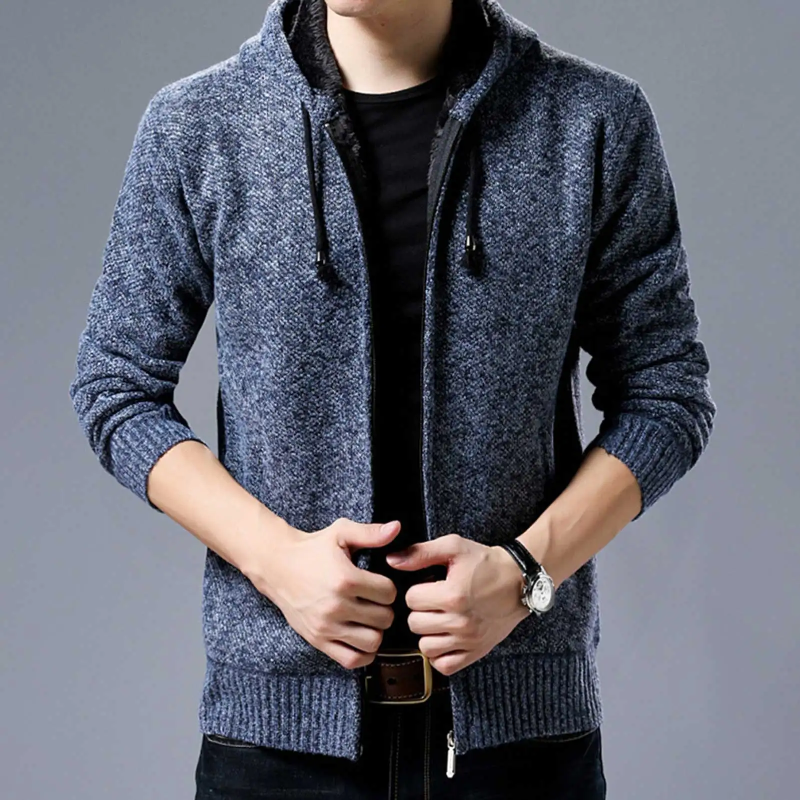 M-3XL Модные мужские осень-зима с длинным рукавом плюшевый вкладыш карманы на молнии трикотажные пальто с капюшоном куртка; Детская одежда; Вязаная пальто свитер для мужчин