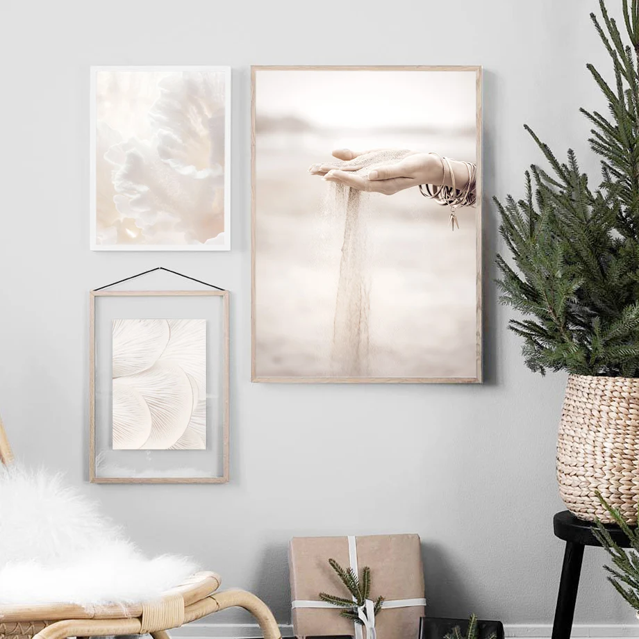 Скандинавский постер на стену с изображением падающих песка Тростников грибов птиц спокойного пляжа