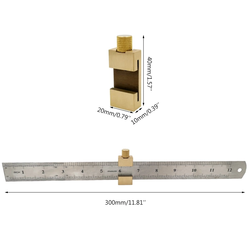 Стальная линейка 0-30 см, латунный позиционный блок, угловой размет...