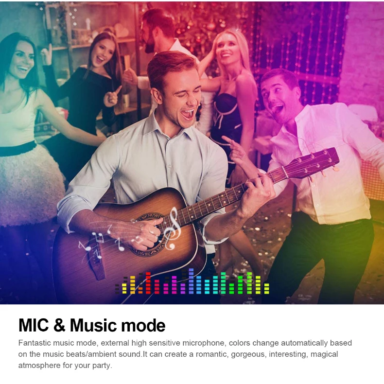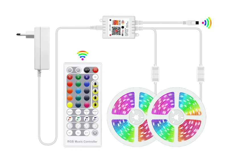 WIFI Светодиодная лента для музыкиСветильник Цвет: разноцветный "Красный-зелёный-желтый в праздничные дни (включая белый)Степень защиты: IP20Напряжение: 12 В постоянного токаКоличество СВЕТОДИОДНЫЙ: 30 светодиодный s/mДлина: 5 м/10 м/15 м/20 м/30 мTuya WIFI RGB контроллерВстроенный микрофонВходное напряжение: 5 в пост. Тока ~ 24 ВСеть: 2,4 ГГц Wi-FiЗагрузка приложения: Tuya или Smart LifeПоддержка мобильного телефона: Android/IOS sytenФункция: Голосовое управление, дистанционное управление с помощью приложения, регулировка яркости, Совместимость с Amazon Alexa Echo Google Home Assistant, IFTTT