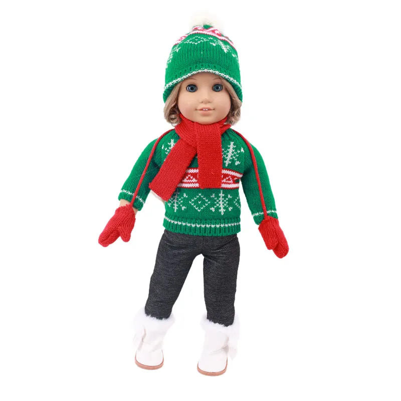 7 комплектов, модная одежда для кукол, Рождественский свитер, костюмы, перчатки, шапки, шарфы для кукол 18 дюймов и 43 см, подарок для девочки поколения