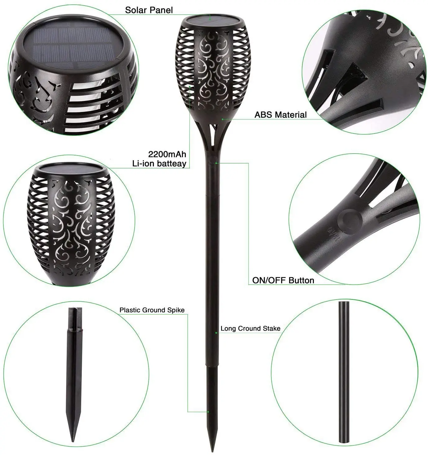 4 шт., водонепроницаемые садовые фонарики с реалистичным пламенем, IP65