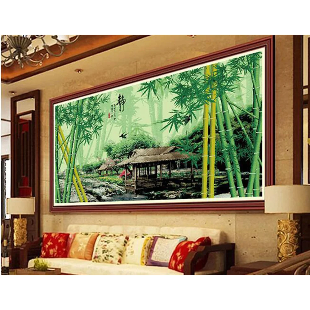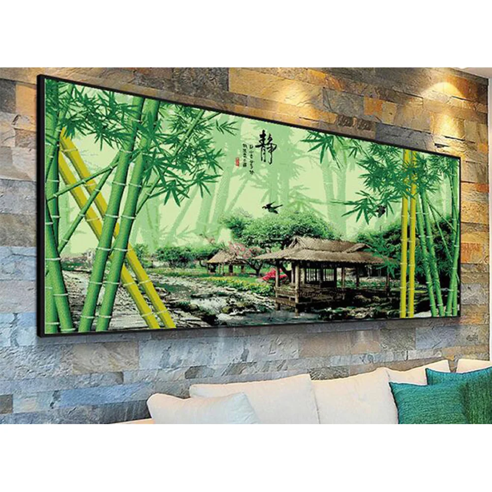 Алмазная вышивка 5D сделай сам, мозаика, китайский старинный павильон, бамбуковая роща, ласточка, полноразмерная картина с большим пейзажем, вышивка крестиком