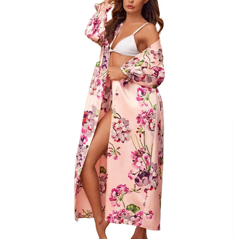 Женские пикантные банные халаты с цветочным принтом, атласное шелко...