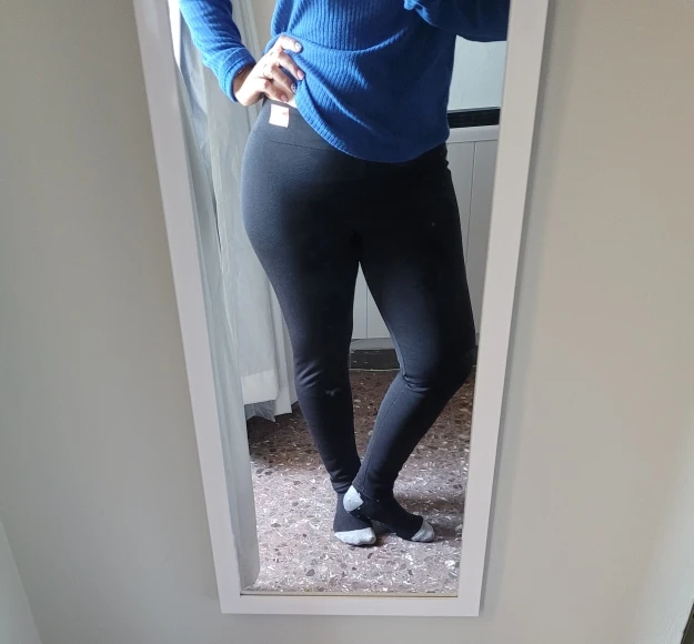 Доставка около двух недель. На рост 165, талия 68, бедра 95 сели XL хорошо, но коротковаты. Есть торчащие ниточки. Внутри пушисто, но шов боковой чешется, если ноги чувствительные. Позже отпишусь по температуре на улице.