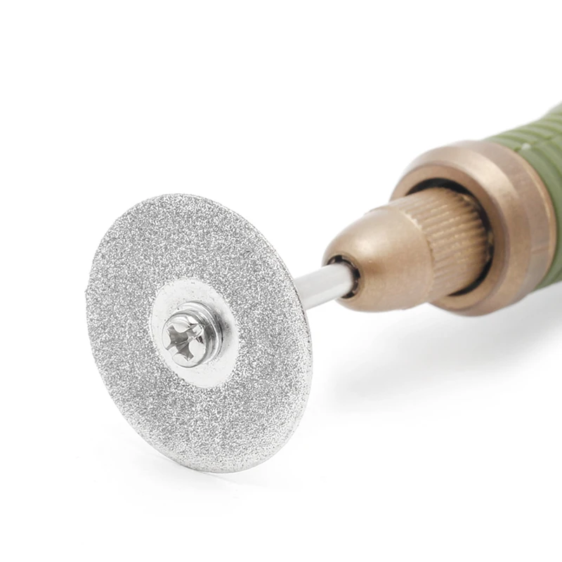 Совершенно новый и высококачественный никелевый скрепленный алмазыЭти высокоскоростные отрезные диски с алмазным покрытием можно использовать с вашим вращающимся инструментом для резки широкого спектра материалов.Резка дерева, стекла, пластика, металла, мрамора, каменной кладки, камня, бетона и стекловолокна.Для использования в плотных местах и для промывки.РазмерыДиаметр хвостовика: 3,175 мм (1/8 ") Диаметр отверстияДлина хвостовика: 36 мм/1,42"Диаметр диска: 50 мм/1,97"Материал: никелированная стальМаксимальная скорость: 20000 об/минПримечание:Добавьте немного воды для охлаждающей жидкости при использовании.Посылка включает в себя:5x50 мм алмазные режущие диски1 сверло