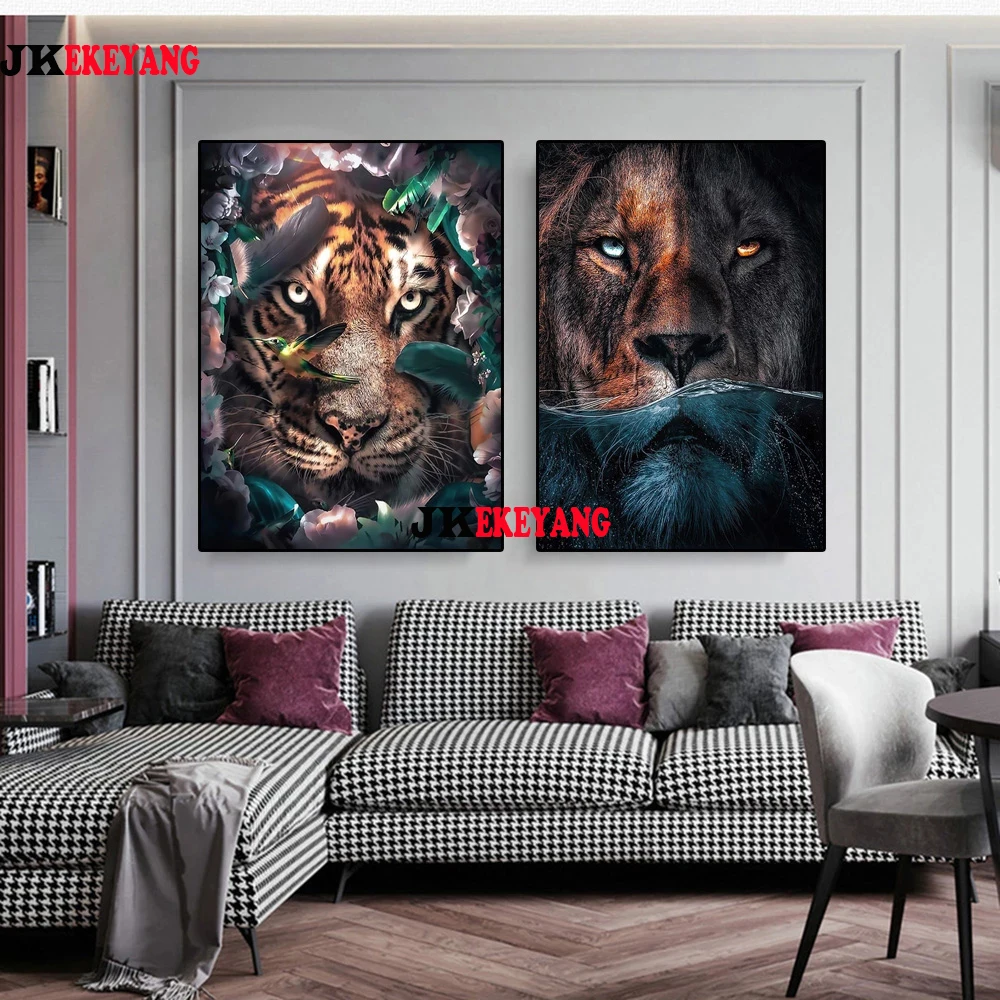 Алмазная живопись 5D "Тигр Лев Гепард", полная квадратнаякруглая дрель, алмазная вышивка крестиком Y3939
