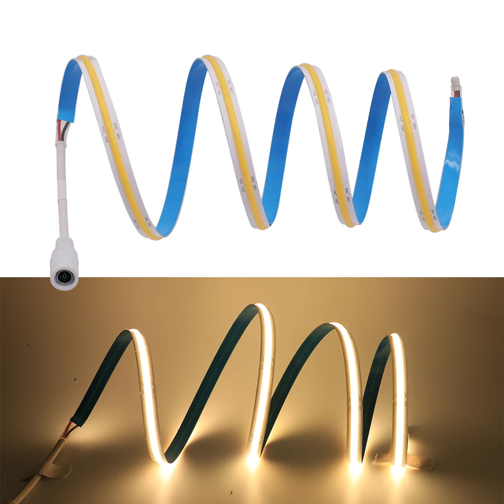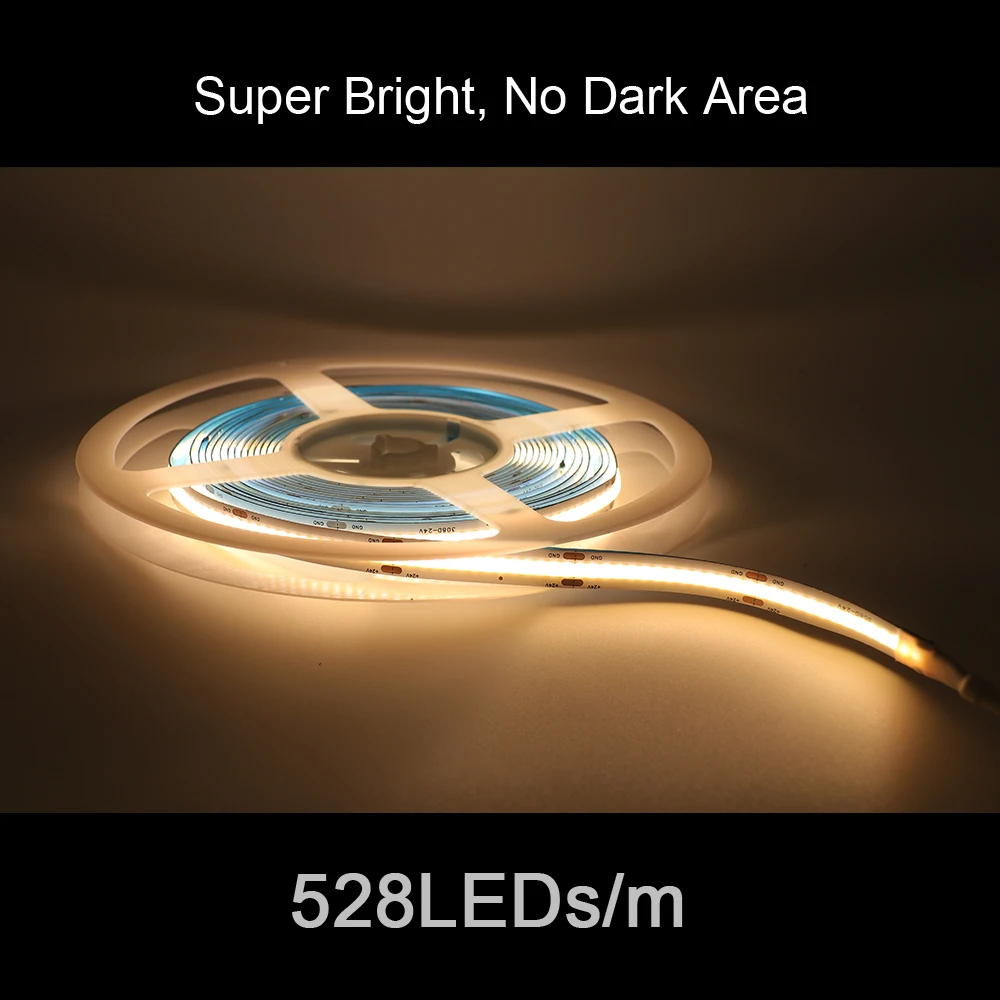 COB Светодиодные ленты высокой плотности 12V 24V DC 528LED 384LED гибкий COB Светодиодная лента, освещение с регулируемой яркостью линейные огни с блоком питания постоянного тока разъем
