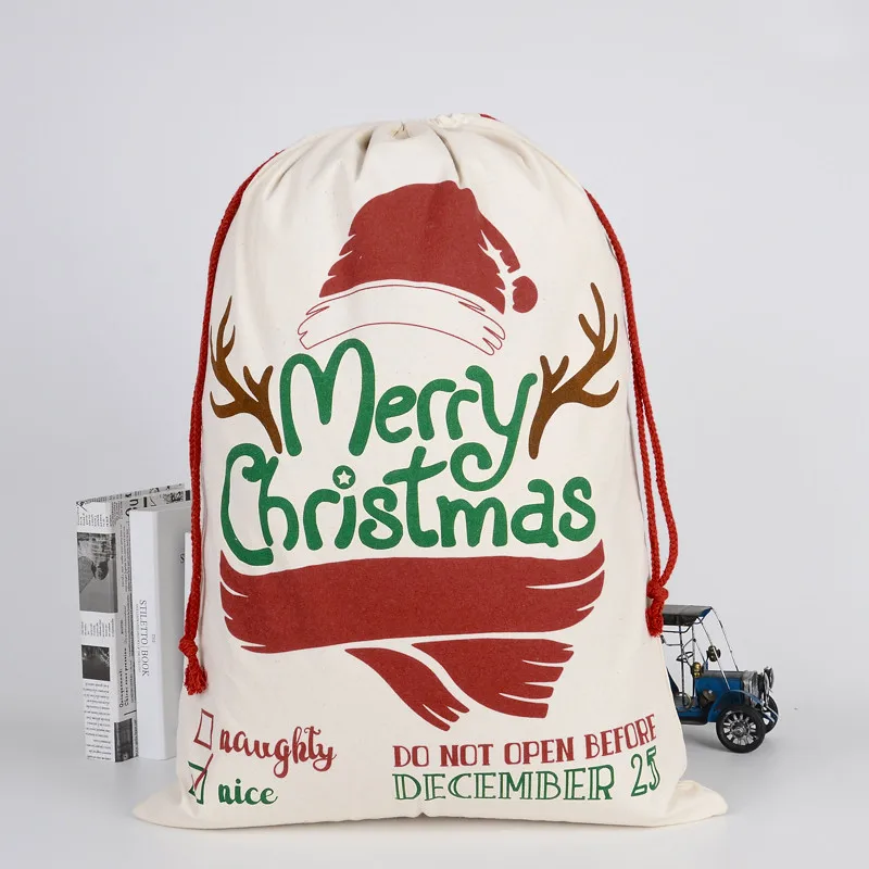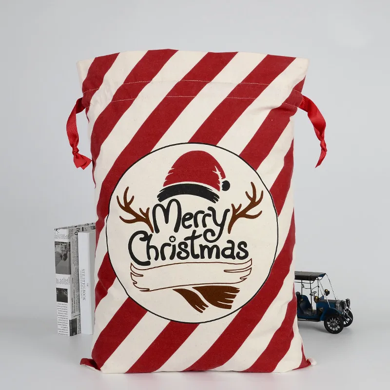 Рождественская Подарочная сумка, вместительная сумка для хранения конфет из хлопка с Санта Клаусом