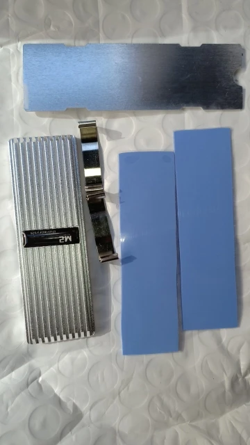 Посылка пришла в Беларусь за 1.5 месяца. Трек номер отслеживался. Упаковка простая конверт с пупыркой. Радиатор м.2 находился в пластмассовом блистере. В комплекте алюминиевое основание две полоски термопрокладки разной толщины. Сам радиатор и две скобы. М.2 NVME я ещё жду. Но думаю подойдет. Доволен, рекомендую. Продавцу спасибо.