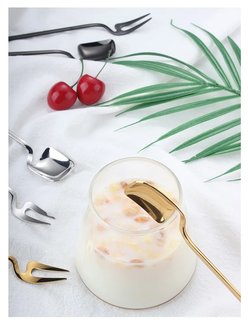 Настенная позолоченная ложка-вилка для фруктов из нержавеющей стали, многофункциональная ложка-вилка для закуска пирог десерт, набор столовых приборов для домашней кухни