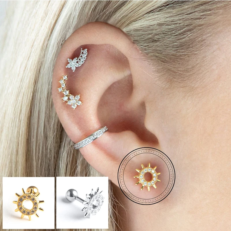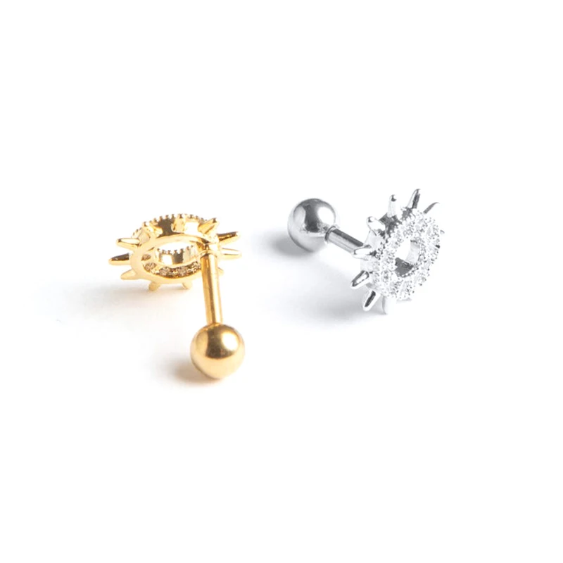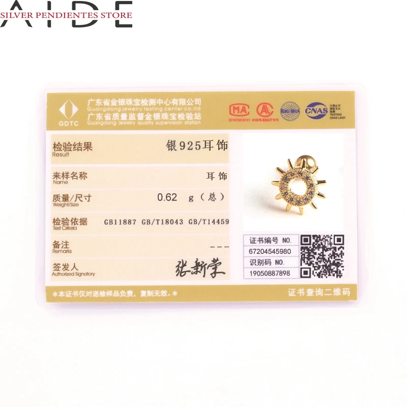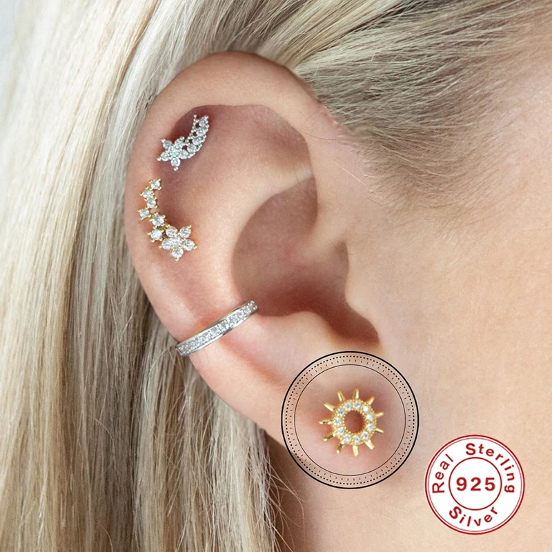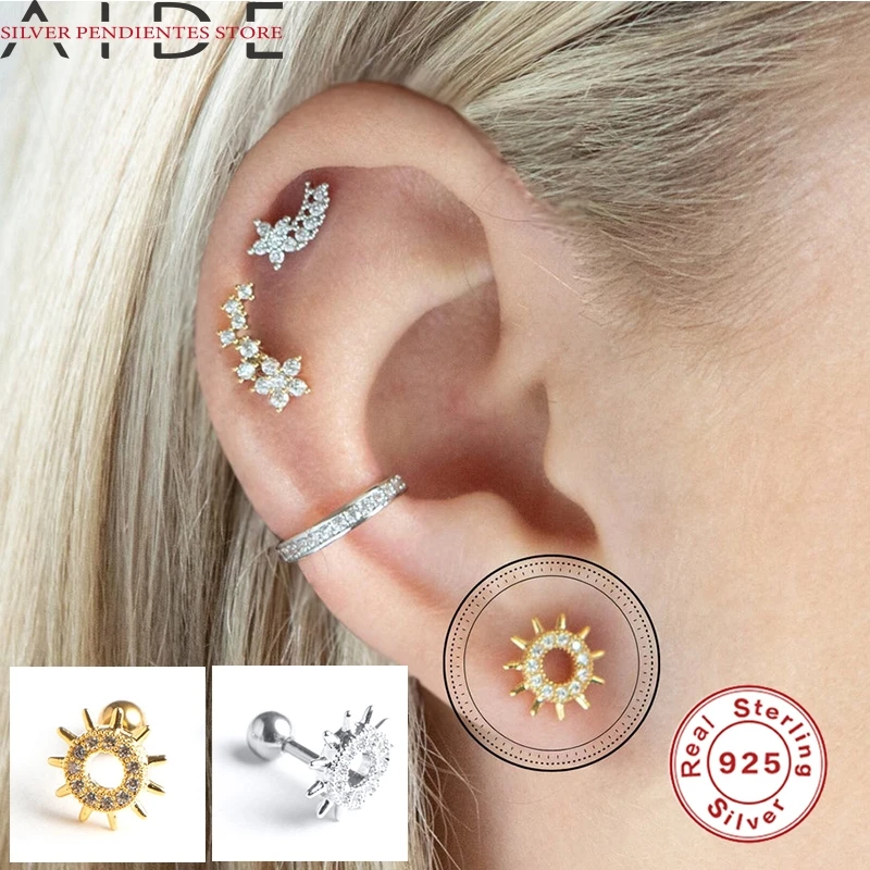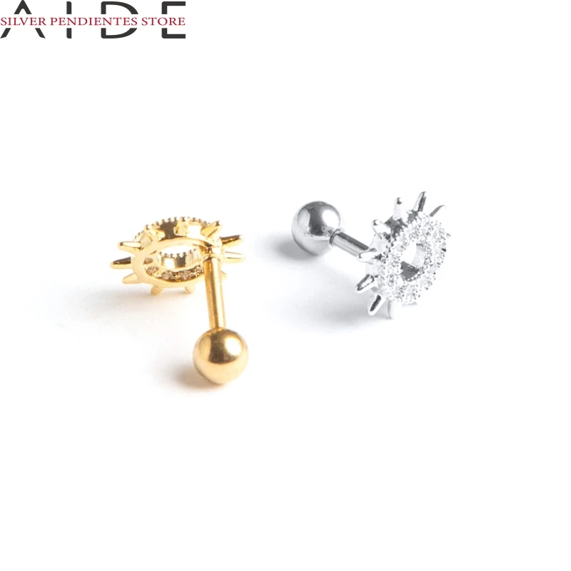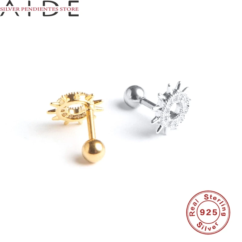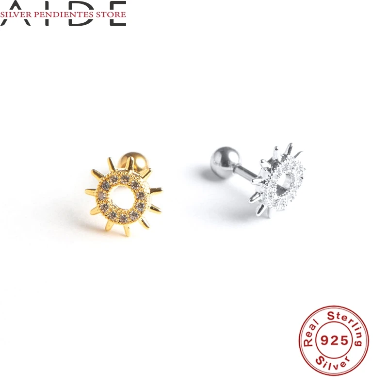 AIDE 925 стерлингового серебра серьги-гвоздики для женщин Мини в форме солнца резьба пирсинг серьги-кольца с бриллиантами Aretes De Mujer; Большие размеры