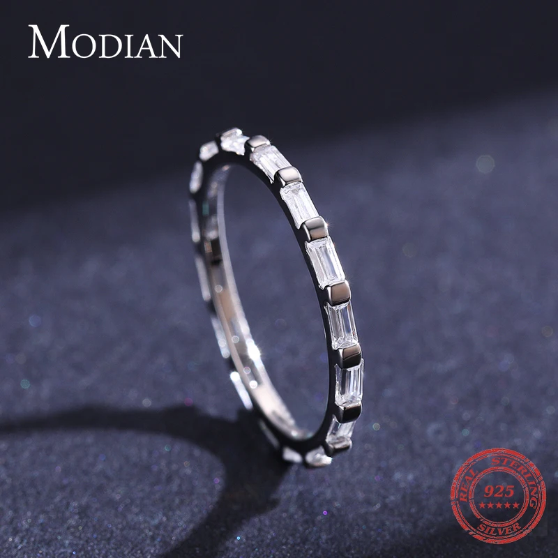 Modian 100% Настоящее серебро 925 пробы с полным прозрачным фианитом роскошное кольцо на палец для женщин кассета Свадьба Обручальное Серебро Изящные ювелирные изделия
