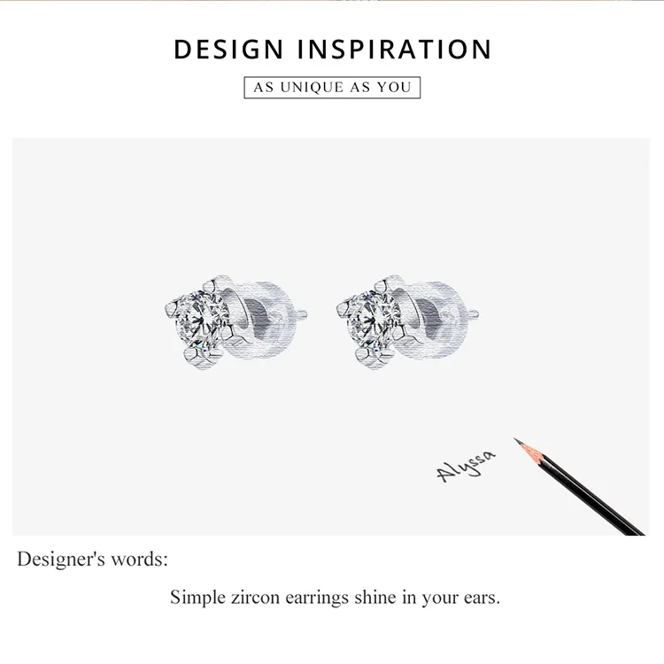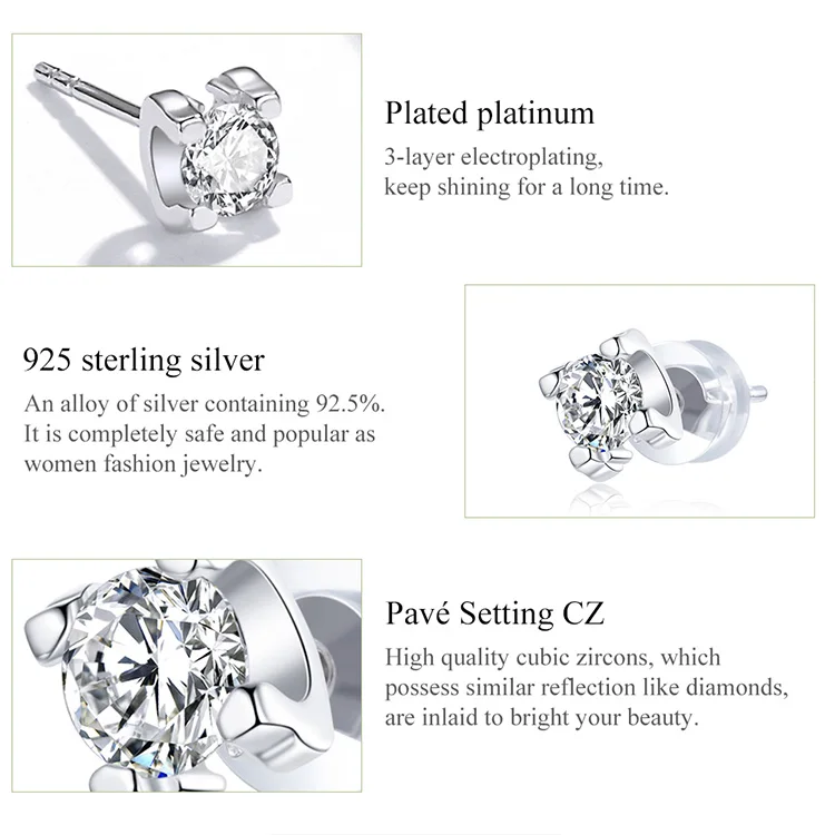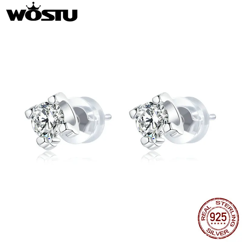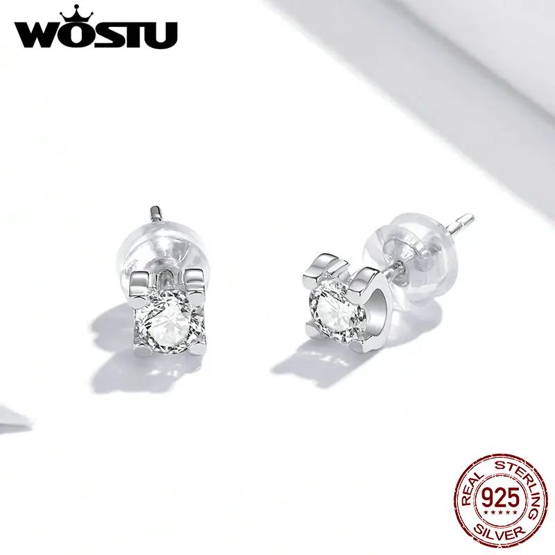 WOSTU серьги-гвоздики серёжки из настоящего стерлингового серебра 925 сияющая простая цирконами прелестные серьги для женщин Свадебные украшения CQE974