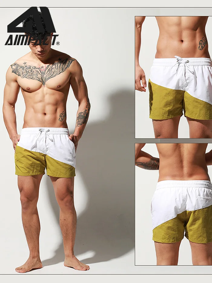 Быстросохнущие мужские пляжные шорты Desmiit с подкладкой, сексуальные плавки для серфинга с кулиской в стиле пэчворк, Мужская пляжная одежда для отдыха, спортивные гибридные шорты для бега, DT96 AM2315