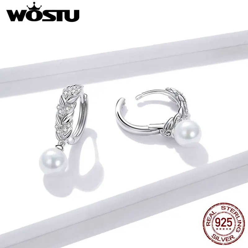 Женские серьги-кольца с жемчугом, серебряные серьги с блестящим кубическим жемчугом, 925 пробы