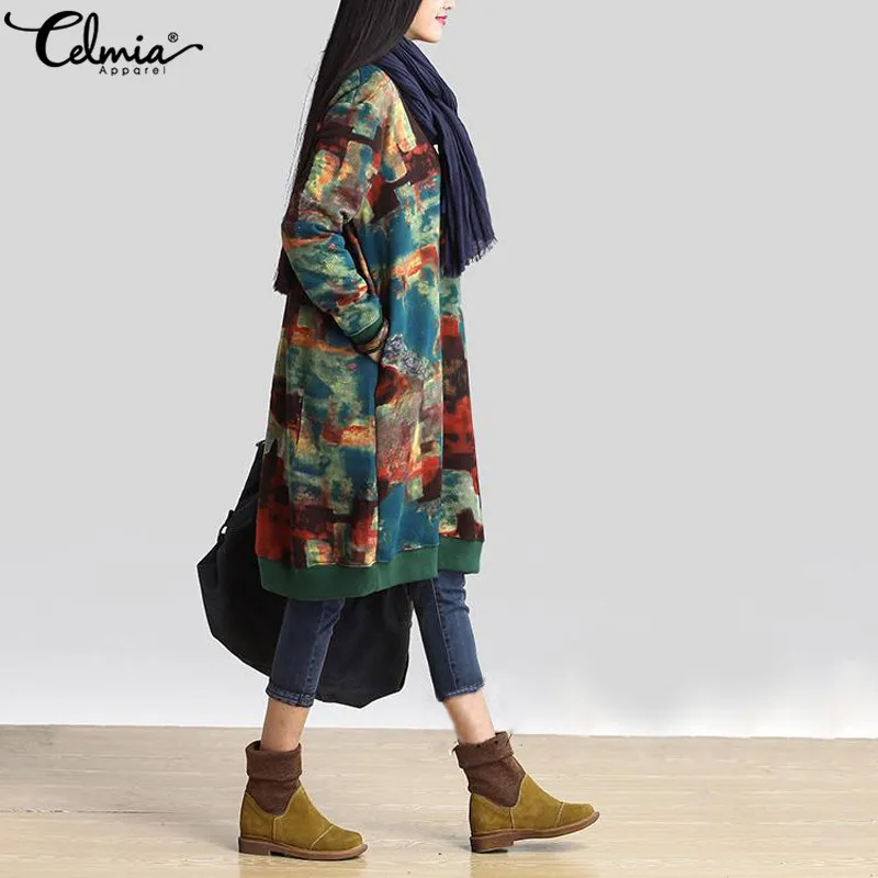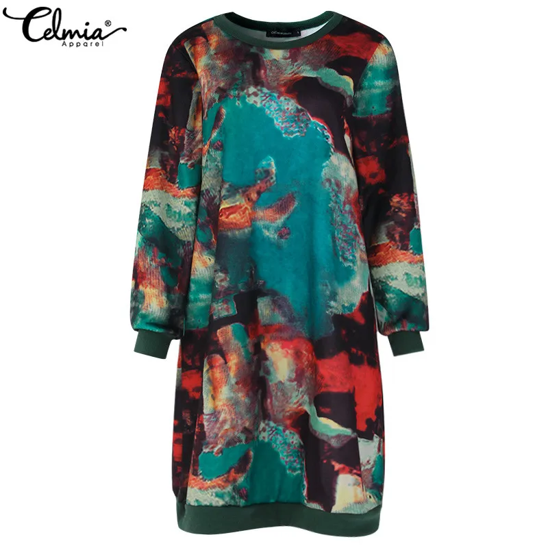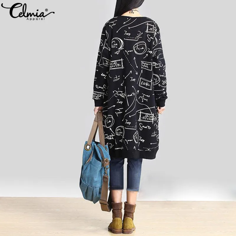 Зимние платья-свитшоты Celmia, женское стильное длинное платье с принтом, осень 2022, Повседневное платье с длинным рукавом, комбинезоны, праздвечерние чные платья 7
