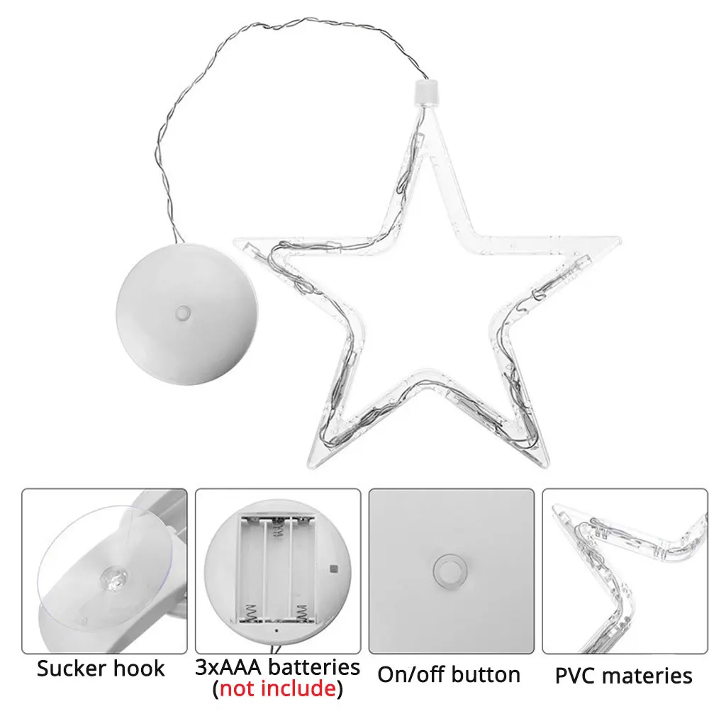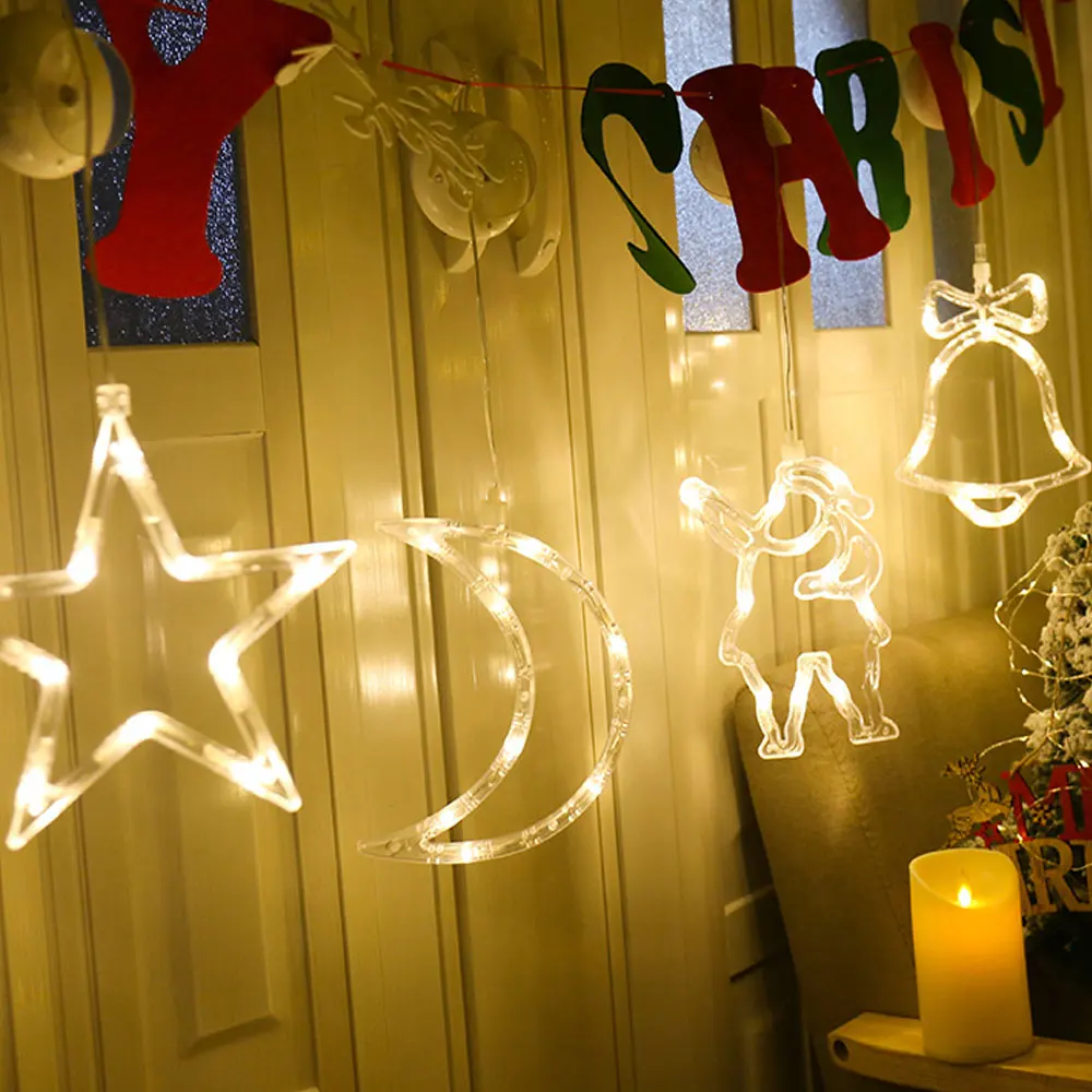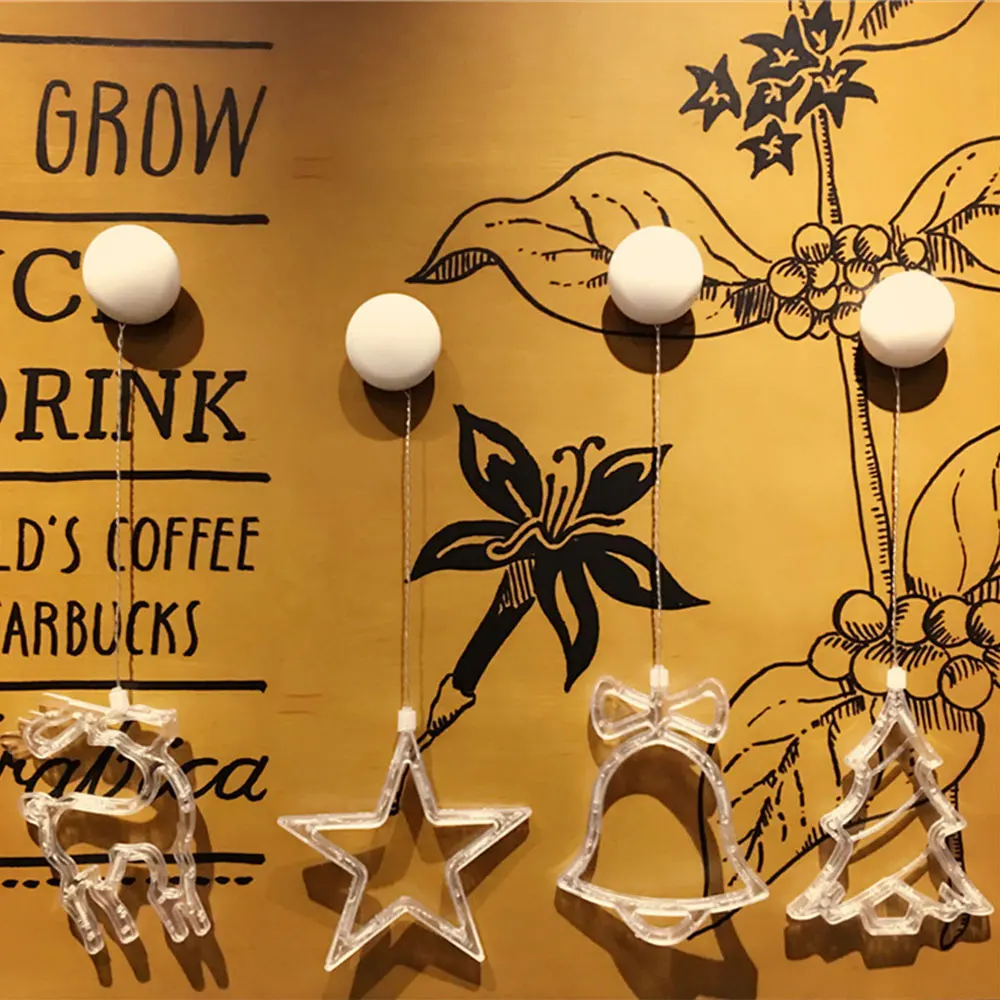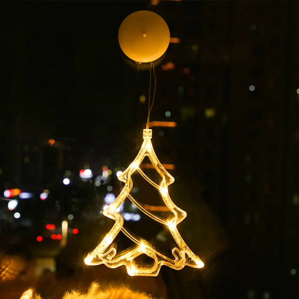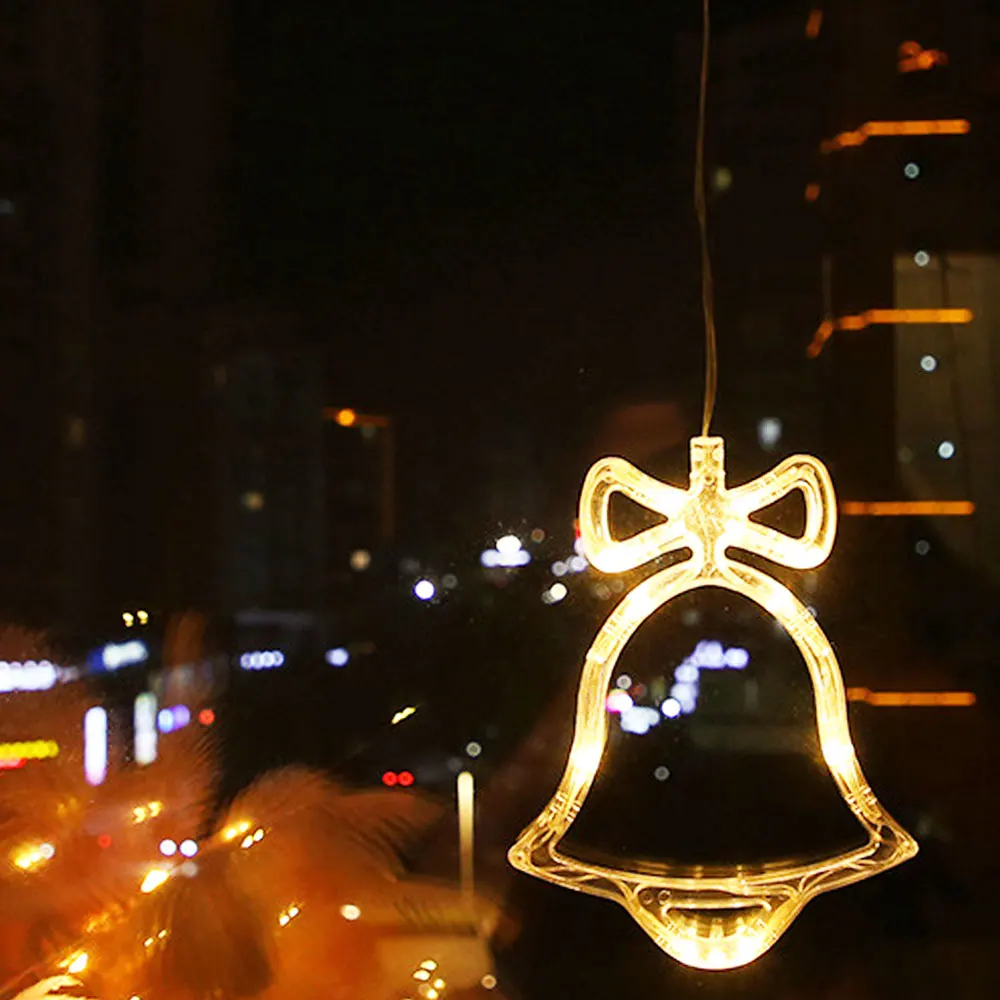 Светодиодный ные Рождественские огни, колокольчик, снеговик, звезда, окно, декоративная лампа на присоске, питание от батареи, водонепроницаемая Праздничная гирлянда для комнаты Dec
