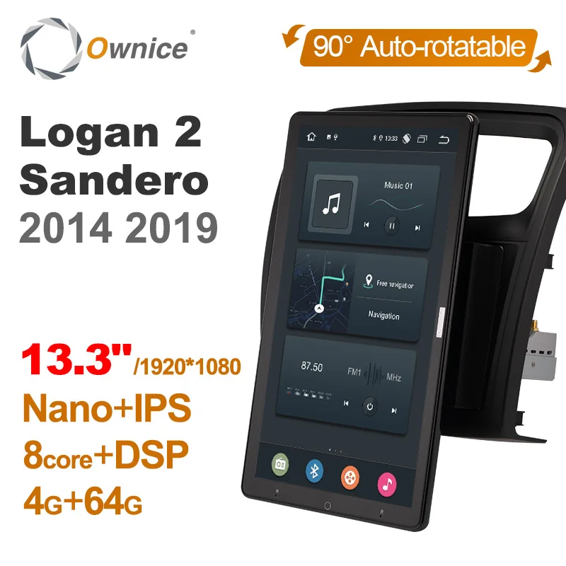 Автомагнитола Ownice, поворотная, 1920*1080, 13,3 дюйма, Android 10,0, для автомобилей Renault Logan 2, Sandero 2014, 2019
