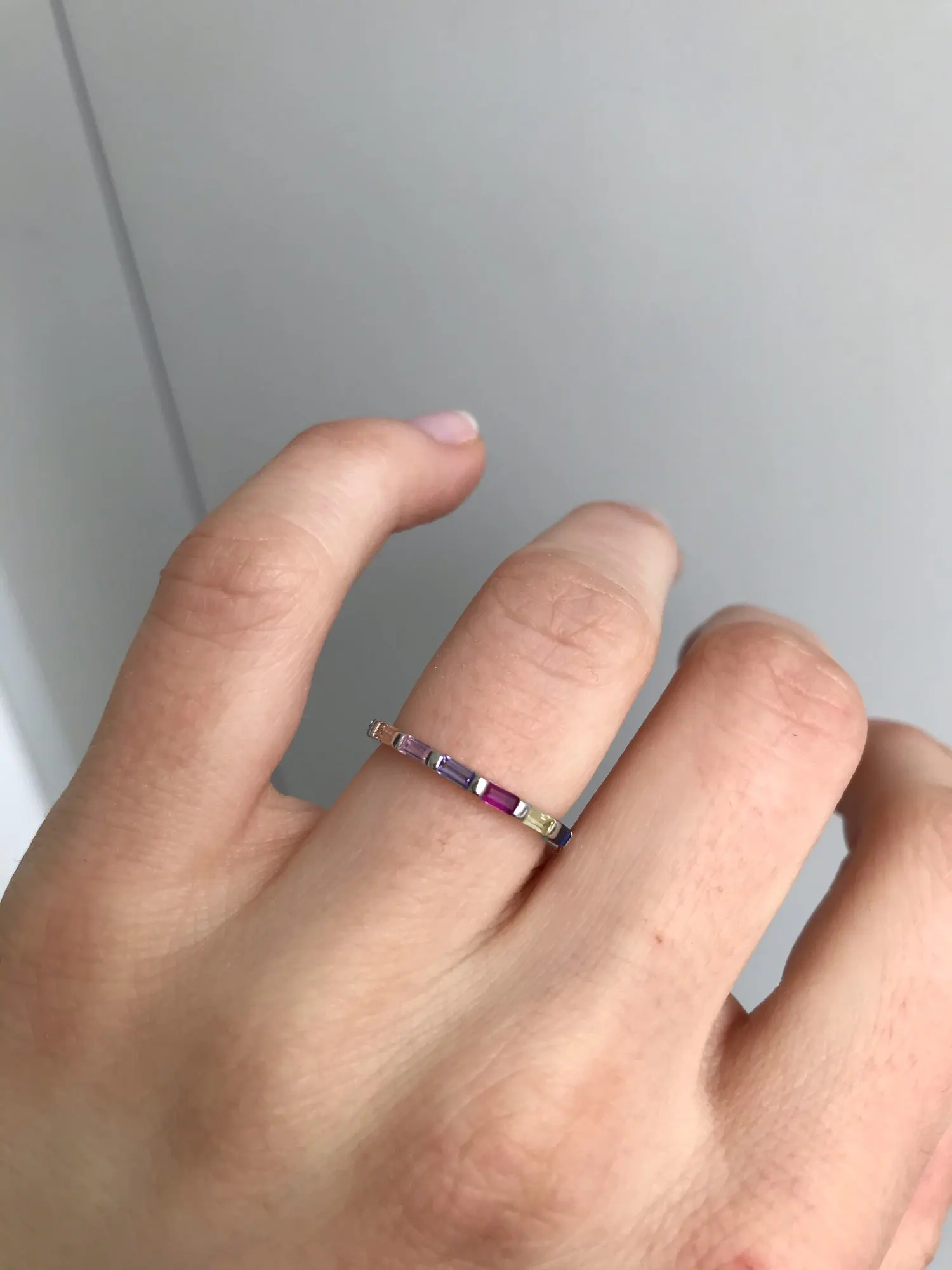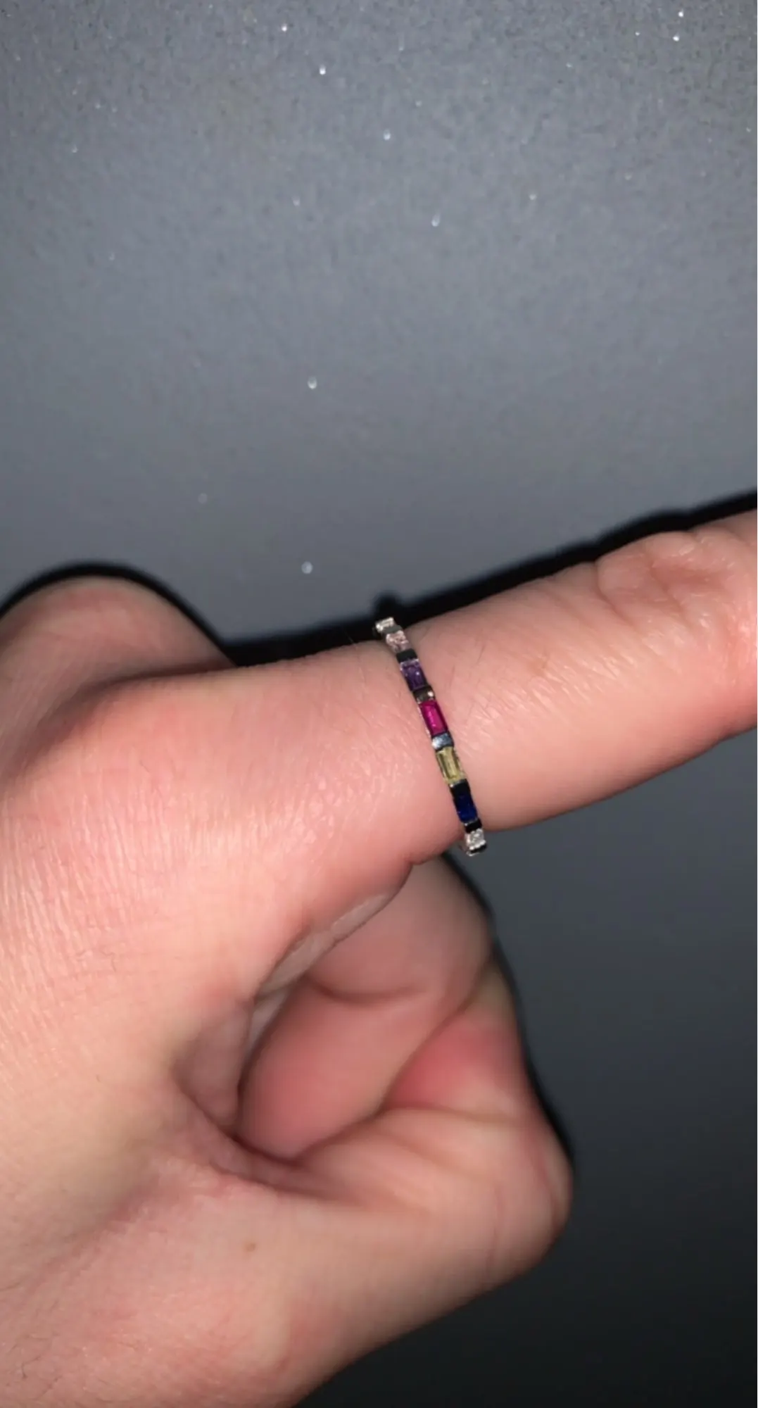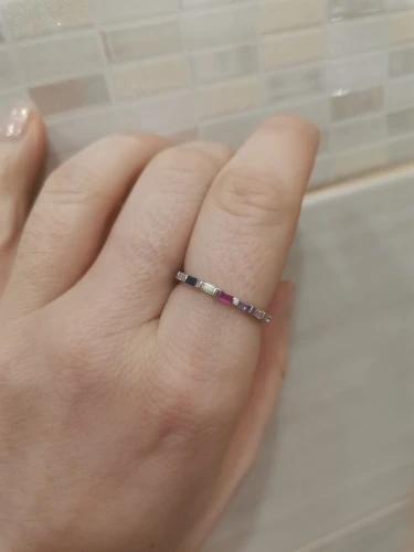 хорошее колечко, заказала второе. заказ пришёл быстро. продавец милейший человек, я попросила отправить на размер меньше и он отправил. в колечке больше прозрачных камушков чем цветных, но его это не портит..