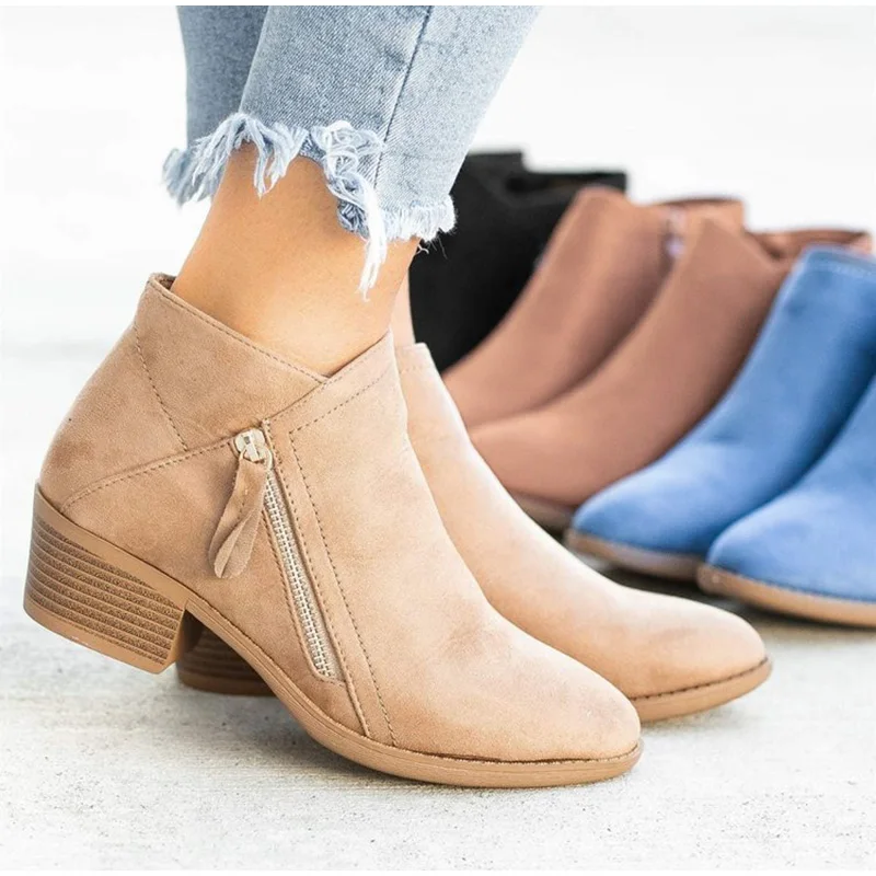 Женские ботильоны на молнии на блочном каблуке, женские короткие бо...