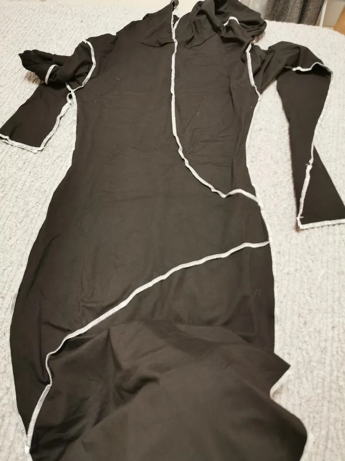 Ставлю платью 3 звезды за явное несоотвествие реальным размерам. Я заказала размер М, а то что мне прислали как М, это XS, не иначе. И я думаю, что это не очень приятно. Мне платье все же подошло, носить буду. Но это не отменяет нессотвествие размеров. Еще притензии ко швам. Которые тут заявлены как грубые швы аля "наизнанку", на деле это обычные швы. Вид платья в целом уже другой. Теперь о плюсах Цвет соотвествут (спасибо хотя бы на этом!) Модель платья интересная и стильная за счет капюшона. Прилагаю фото с ценой на момент покупки. Доставка средняя, не очень долгая, но можно и быстрее. Платье "застревало" в разных пунктах при передвижении по России. Фото самого платья приложу позже +Тут в отзывах уже есть даже в надетом виде Странно, что у многих нет никаких притензий. С рпзмером ладно, может мне одной так не повезло, но по поводу швов такая ситуация у всех. (когда я заказывала фото отзывов не было)
