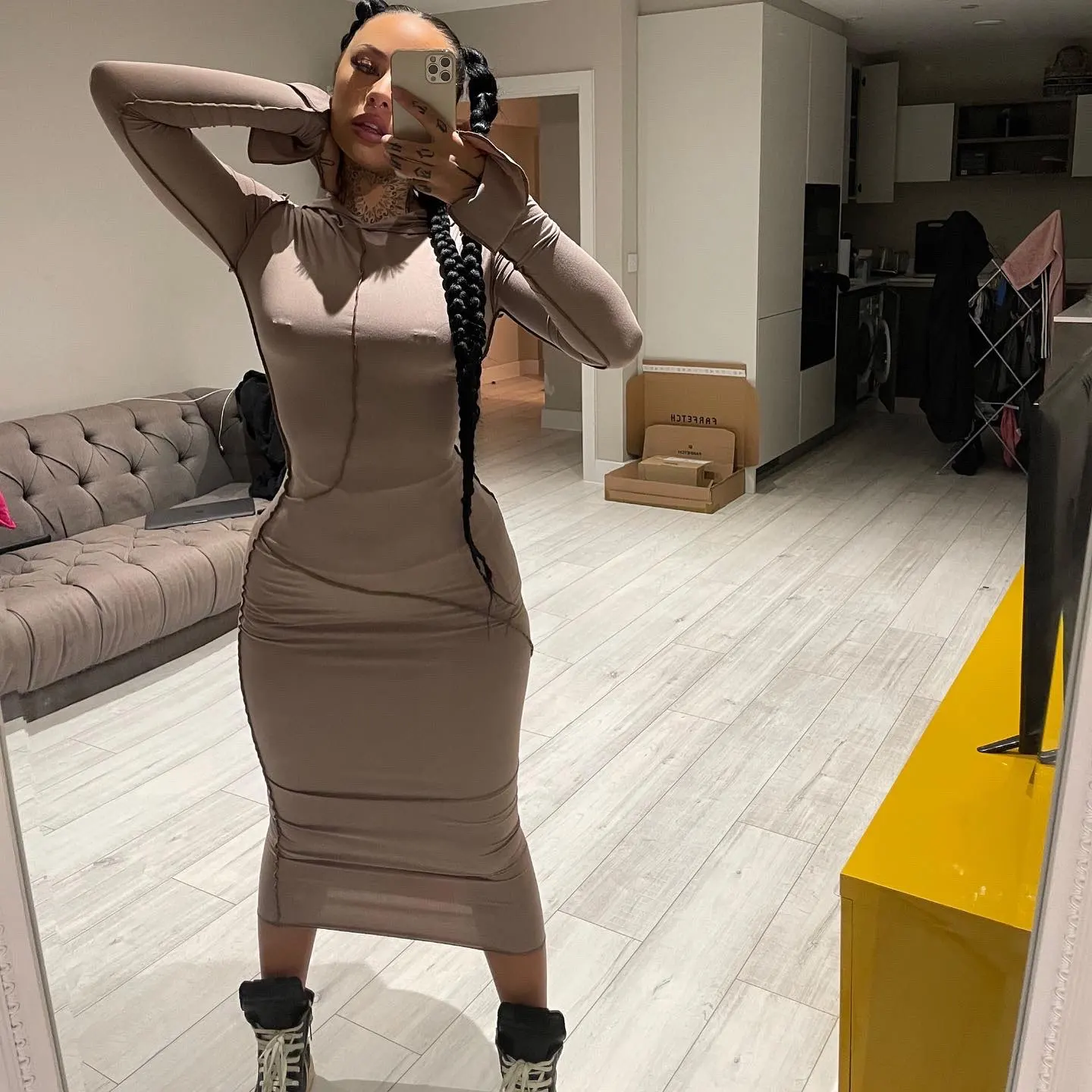 Женское платье макси Hugcitar, с длинным рукавом, с капюшоном, в стиле пэчворк, Повседневная Уличная одежда, осень-зима 2021
