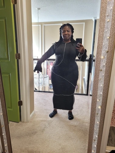 Dress looks exactly like the picture but I’m 5’4 168 pounds I usually wear medium but It would not even go past my arms.lol