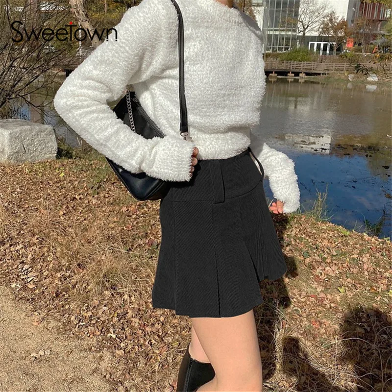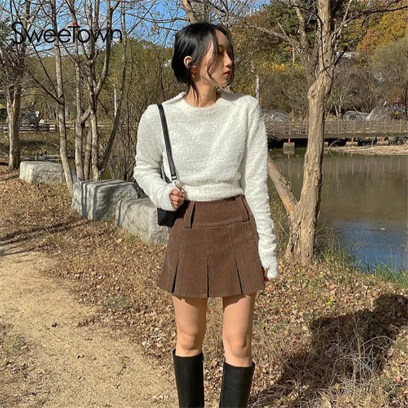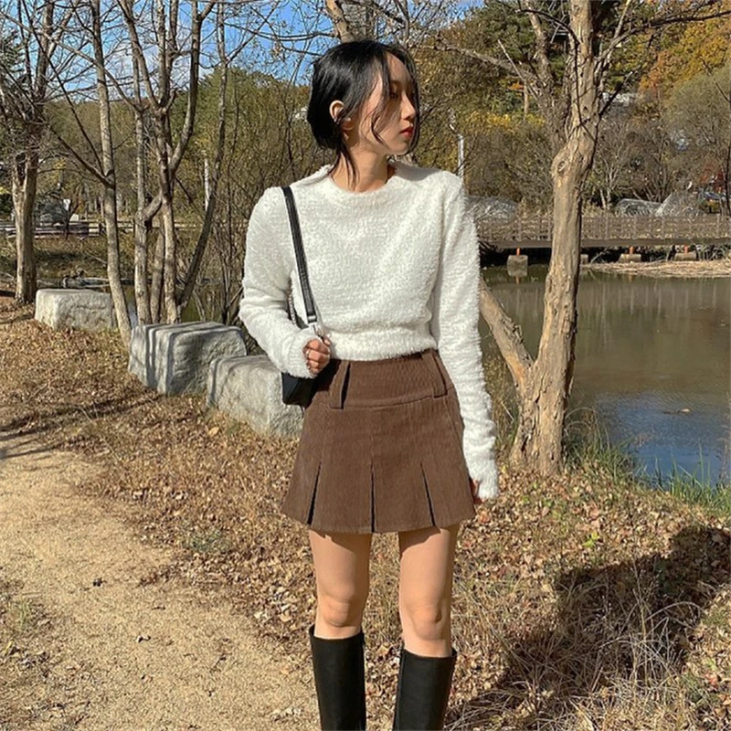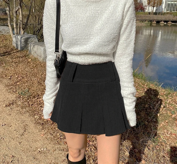 Юбка женская Вельветовая в складку, с высокой талией, в стиле 90-х, мини-юбка для девушек