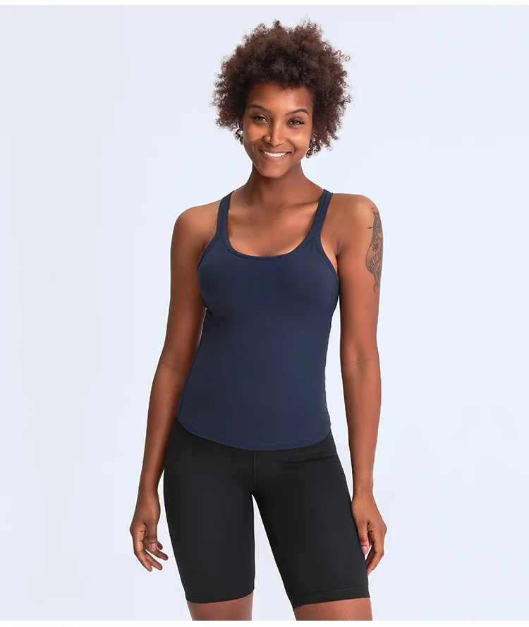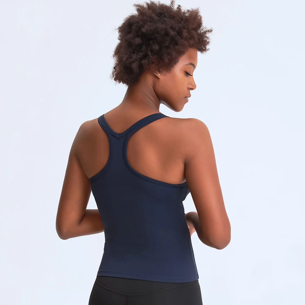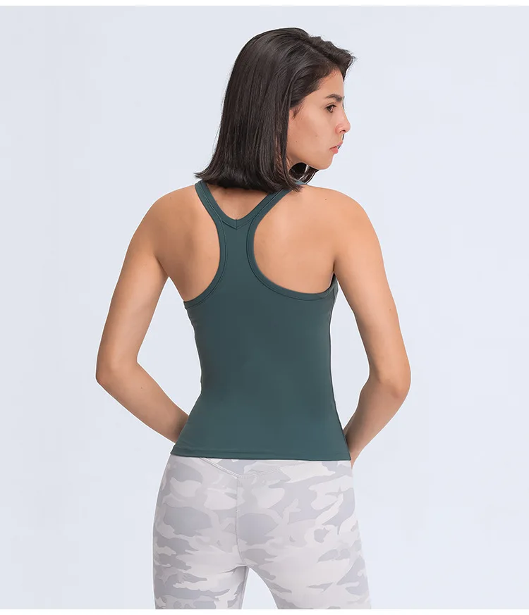 SHINBENE с глубоким вырезом и голая чувствовать себя тренировочная спортивная йога нательные блузки без рукавов Для женщин голой мягкий Slim Fit тренировки Фитнес топы с бретельками