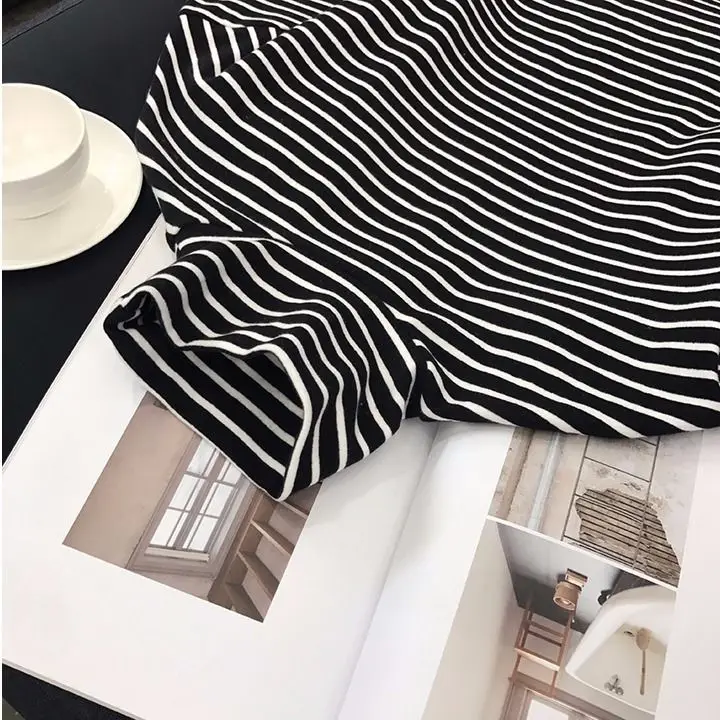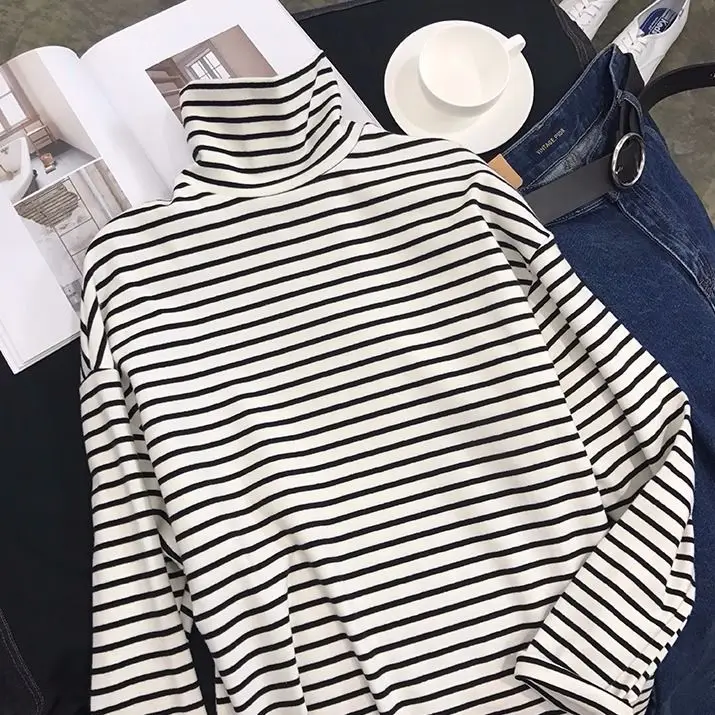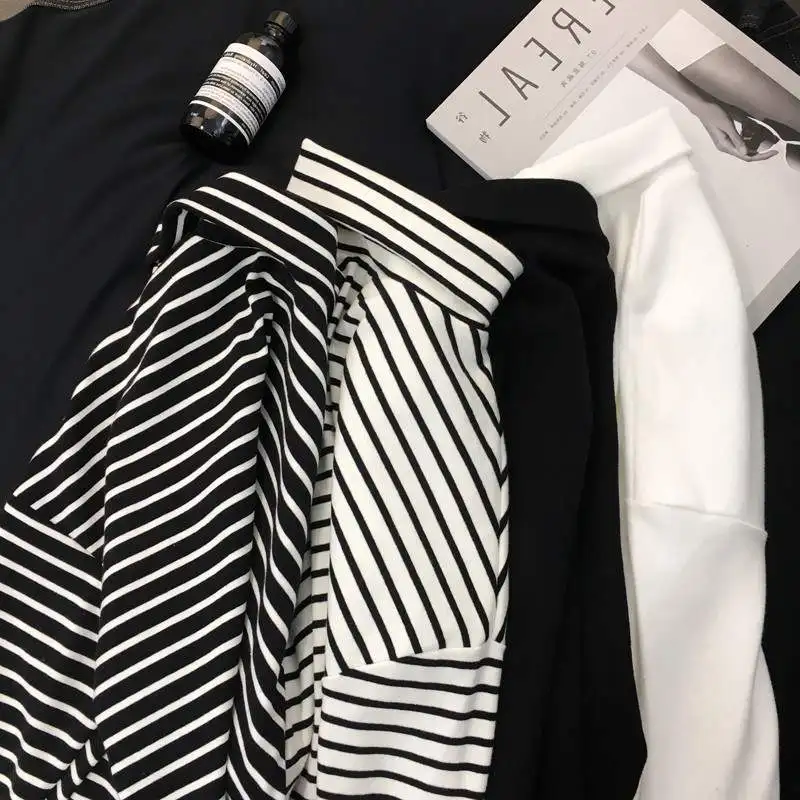 Новинка, тонкая полосатая водолазка, женская одежда для пар, Весенняя новинка, футболка с длинным рукавом, Топ