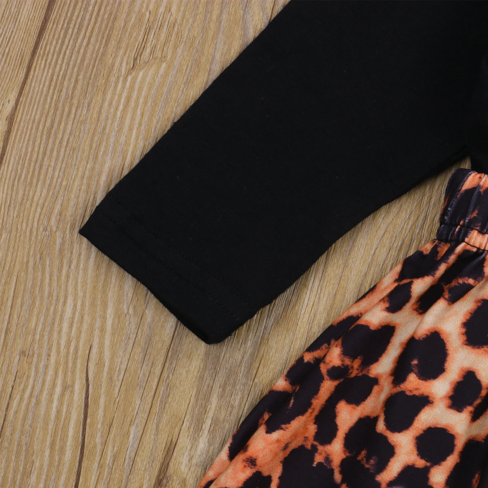 Детский костюм-комбинезон с круглым вырезом, платье с длинным рукавом и леопардовым принтом, осенняя одежда с бантом